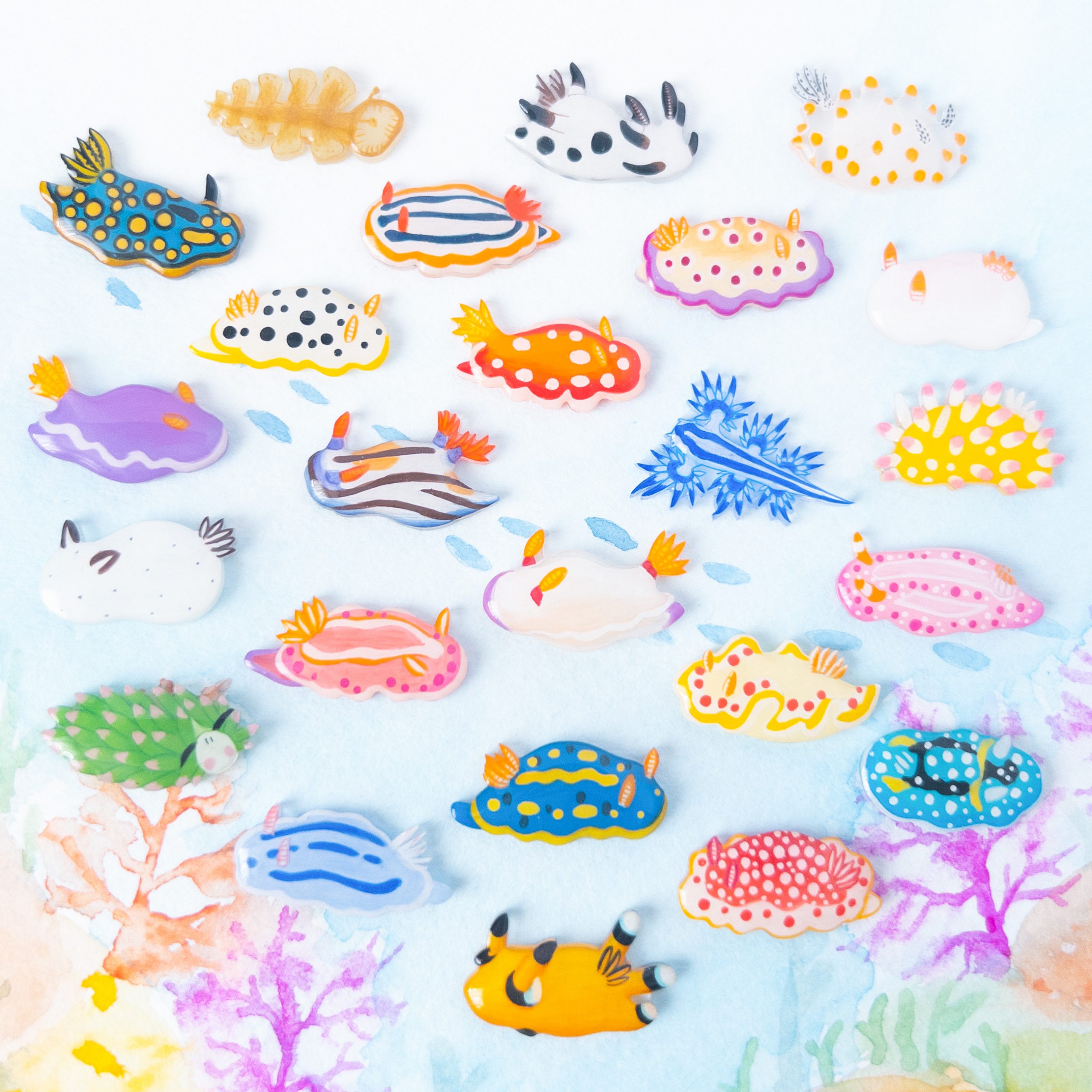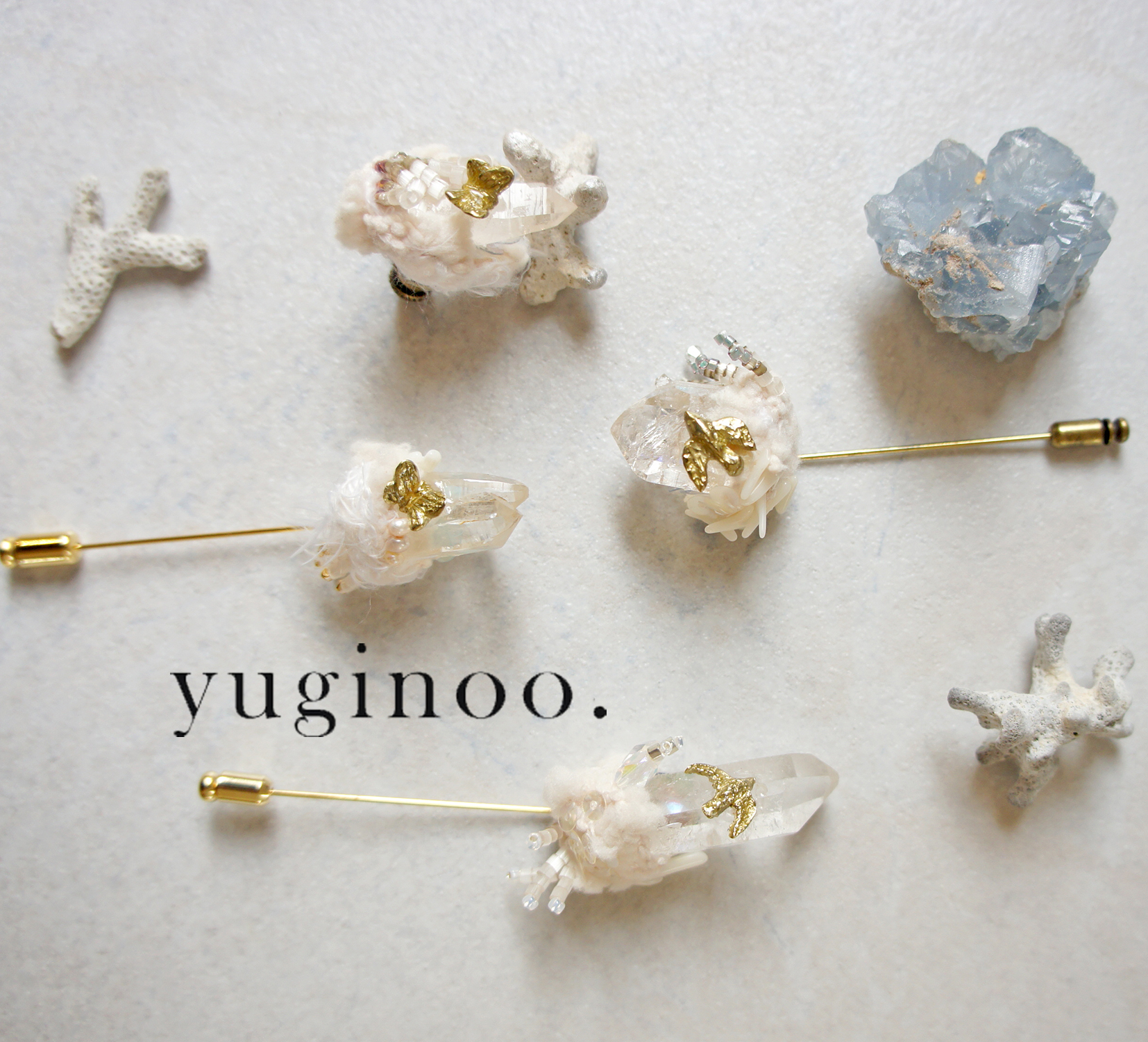 鉱物、動物、植物などをモチーフに、異なる素材や技法で制作されたアクセサリー。