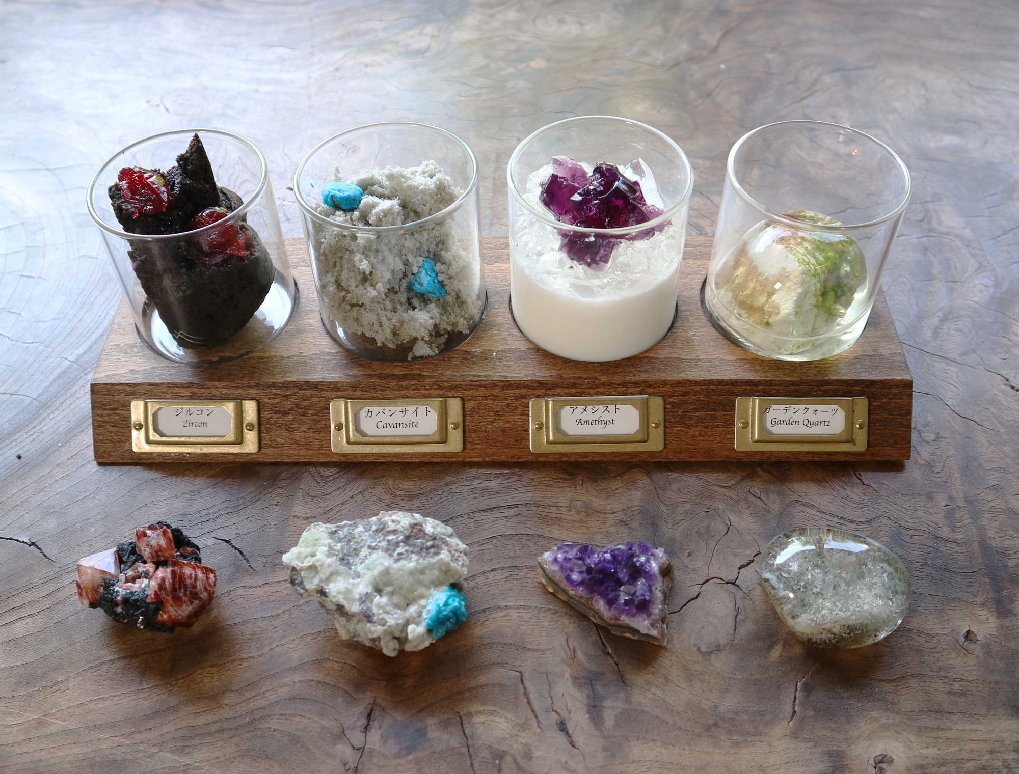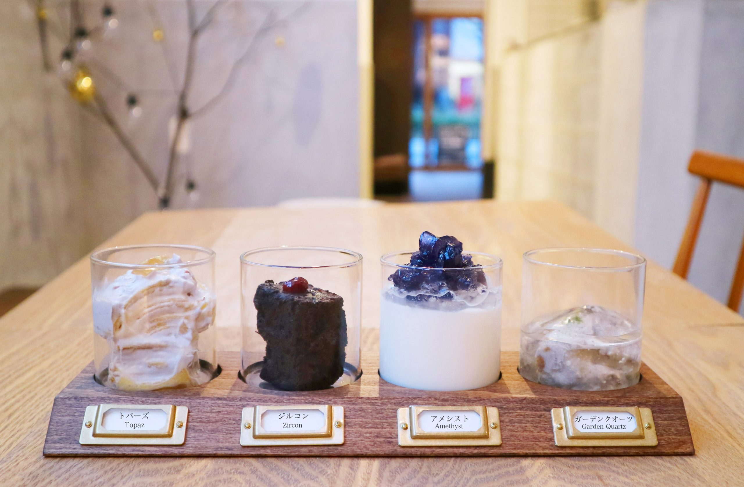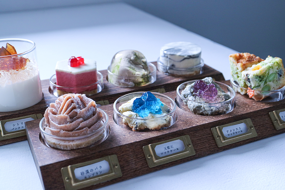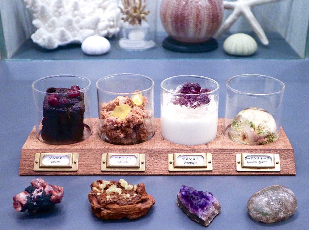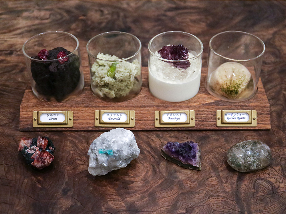 「鉱物スイーツ・アソート」は、全8種のスイーツから4種をお選びいただくことができるようになり、限定メニューではなく、毎日の営業で継続できるようになりました。
