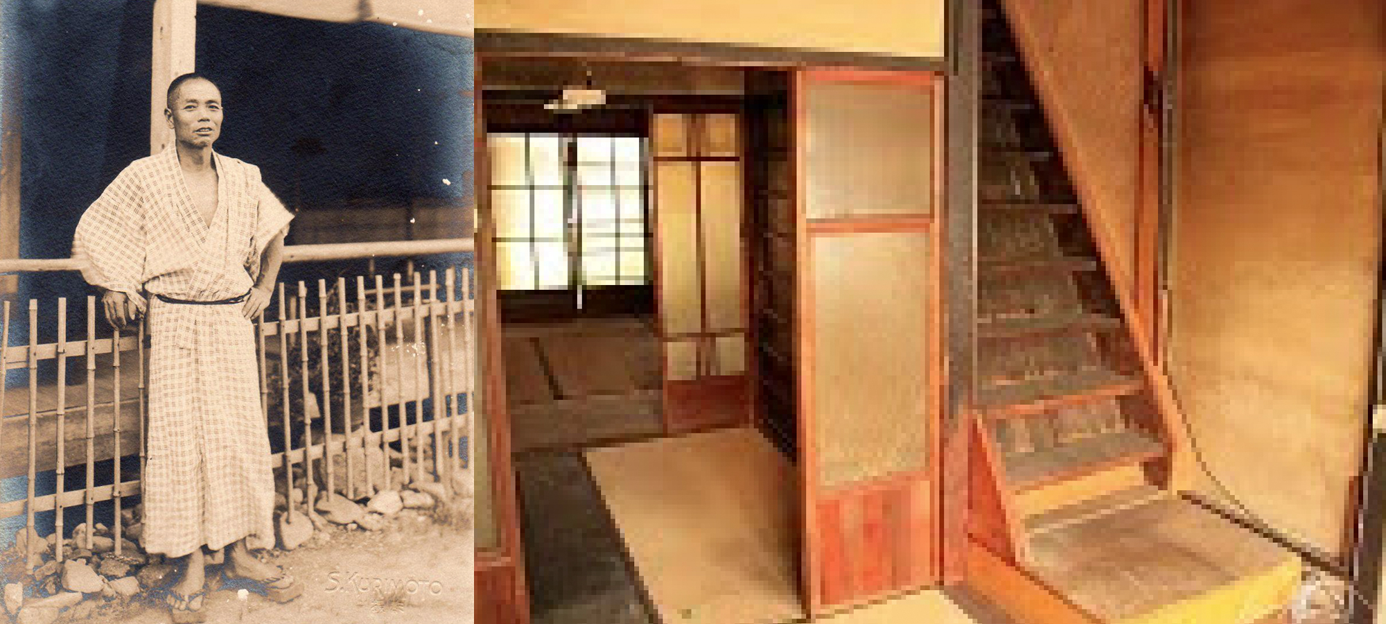 (左)宮大工の棟梁であった吉村富三郎 / (右)改装前のウサギノネドコ京都店(2011年)
