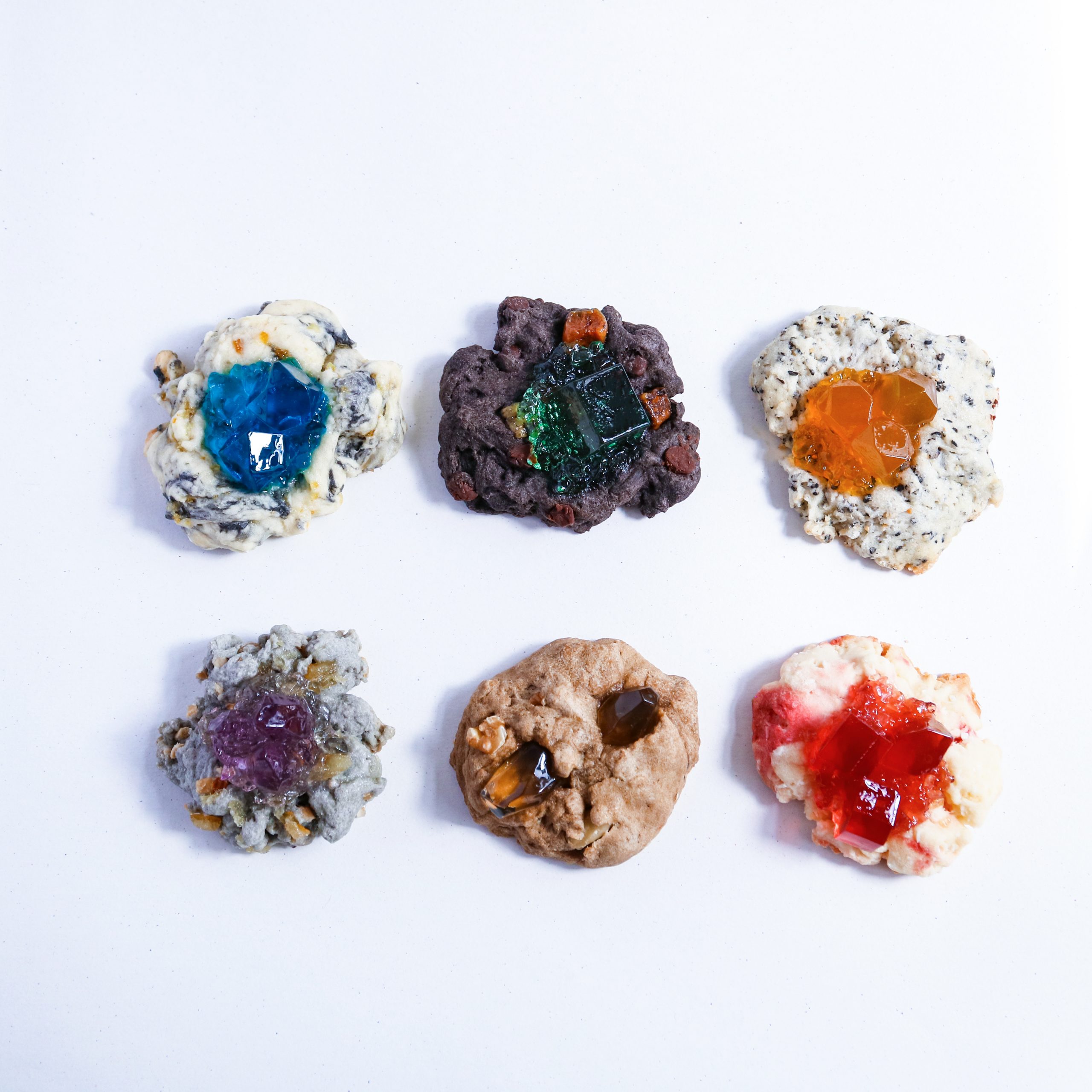 キラキラと輝く鉱物結晶をのせたロックケーキで、6種類ございます。