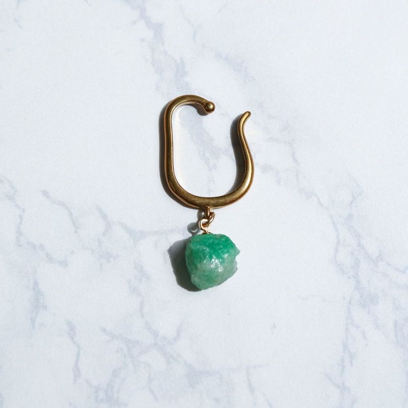 耳元でキラキラと揺れて輝くイヤーカフは、耳の軟骨に引っかかりしっかりとホールドしてくれるので、落ちる心配も少ない金具を使用しています。
