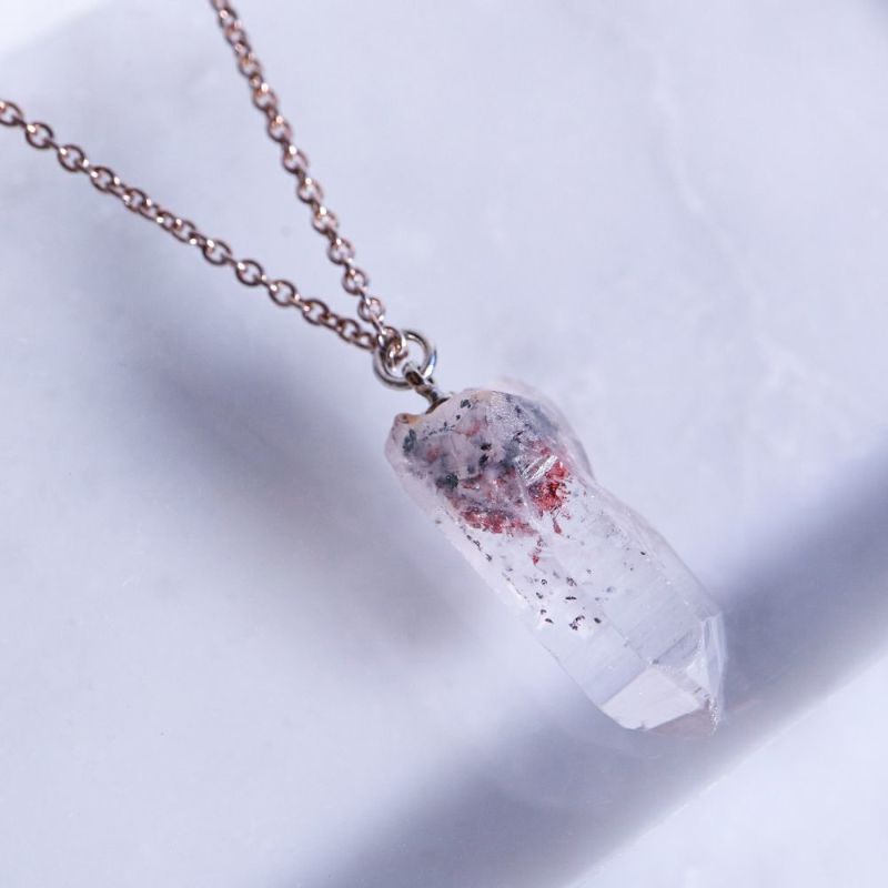 水晶の中に、ヘマタイトが結晶したヘマタイトインクォーツ。