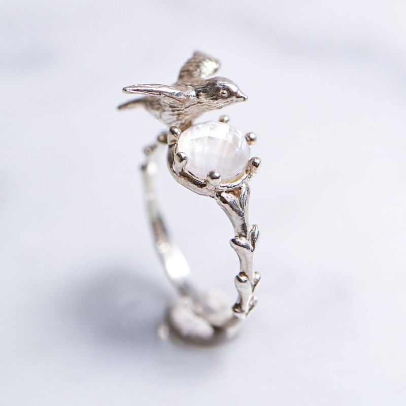 羽の流れや動きまで丁寧に表現されたリングは、身につけて、飾ってうっとりと眺めたくなる作品です。