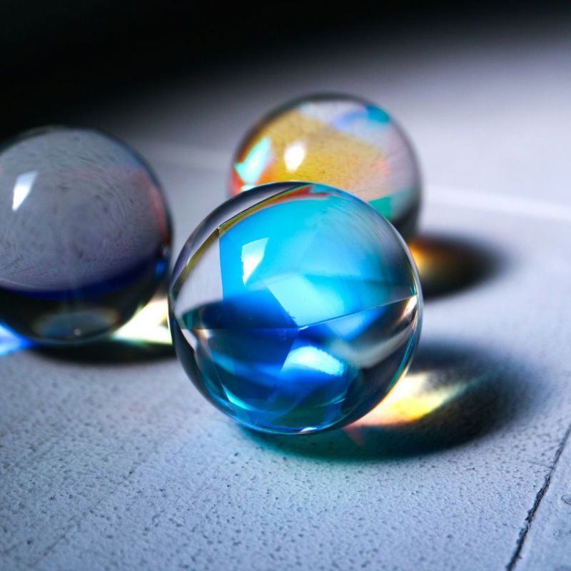アクリルの中で光が乱反射・収束するため、強い光の下はもちろん室内灯の下でもカラフルな光を描き出します。