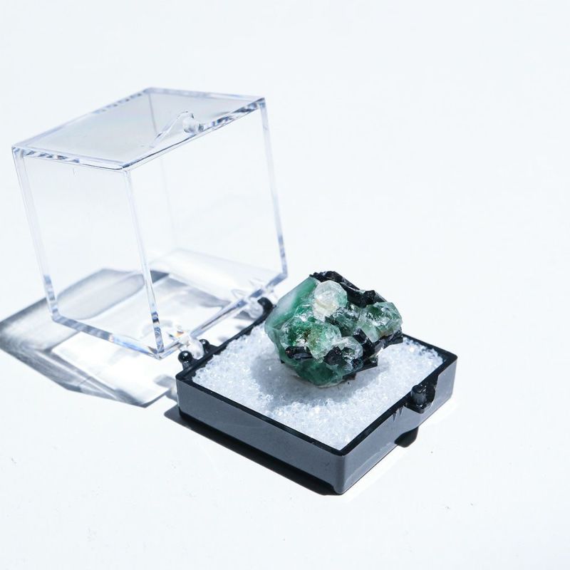 つまめるほどのサイズ感ですが、緑と黒の組み合わせ、結晶の形のユニークさで見どころたっぷりの鉱物です。