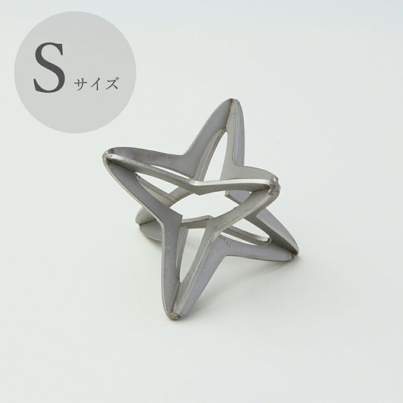 HOSHI(S) ペンスタンド、ペーパーウェイト、ブロック、モビール、ペンダントトップなど、工夫次第で様々な使い方ができるオブジェ「HOSHI」。 大阪を拠点にインテリアやアート、家具などの物作りに取り組むTOOP design worksによる作品です。 元々は瀬戸内海に浮かぶ犬島でのアートイベントのために製作されました。 このオブジェがSola cubeのスタンドとしてぴったり!ということで展開をしています。 HOSHI (S) は4cm角の Sola cubeと組み合わせることができます。 Sola cubeとセットで贈り物におすすめです。 ■ サイズ D45mm × W45mm × H45mm ■ 重さ 32グラム ■素材 ステンレス ■制作