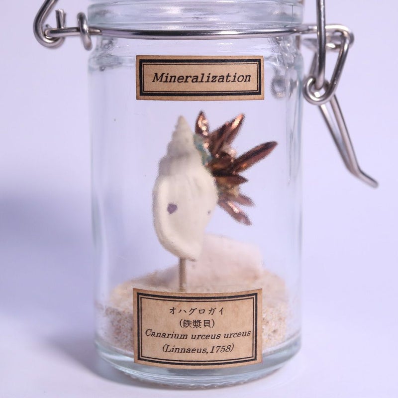 貝の造形から結晶の制作に至るまで作者の手作業で行われており、一つとして同じものはありません。