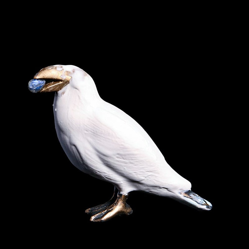 ラブラドライトを咥えたカラスのオブジェ。