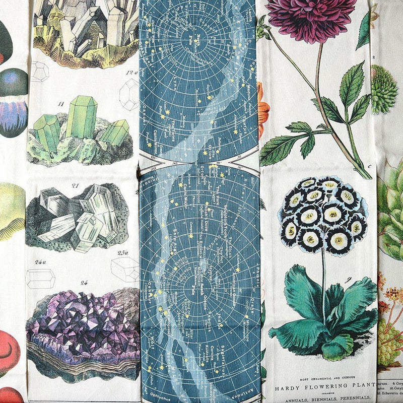Cavalliniによる博物や天体のイラストをプリントしたティータオルです。 1989年にサンフランシスコで設立されたCavallini社。 19世紀の解剖図からミッドセンチュリーの旅行ガイド、地図から植物図鑑まで、 何百年にもわたって収集されたコレクションから選ばれた美しいイラストを身近なアイテムに落とし込んでいます。 ティータオルとは、ヴィクトリア時代イギリスでティーポットが冷めないよう包んでいたことから名付けられたイギリス版「手ぬぐい」で、現在でも欧米の多くの家庭で日常的に使われているキッチンアイテムです。 コットン100%で生成りのしっかりとした生地でできており、安心して普段使いができます。 繊細な部分までしっかりと表現されていますので、タペストリーのように飾ることもできます。 華やかなプリントの実用的なティータオルは、ちょっと気の利いた贈り物になります。 毎日の何気ない家事が、少し楽しくなるようなアイテムです。 ■サイズ 約 810mm x 480mm ■重さ 約90g ■素材 綿