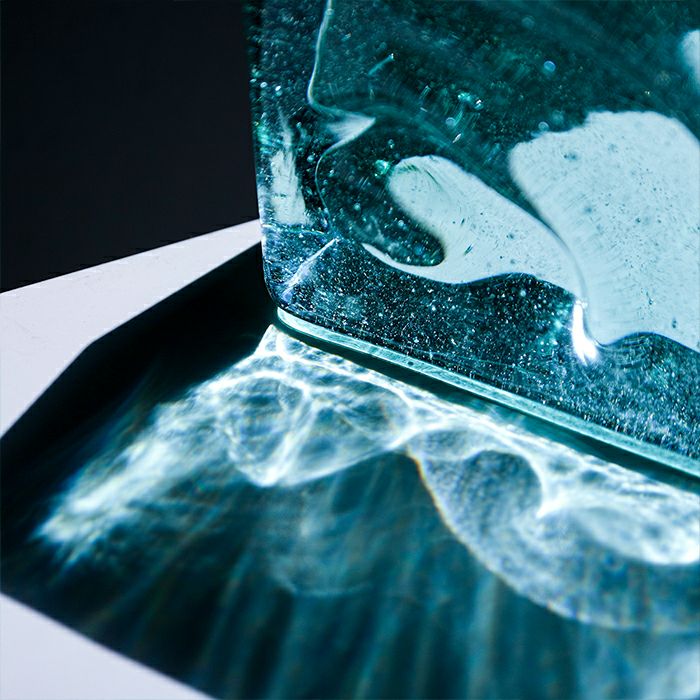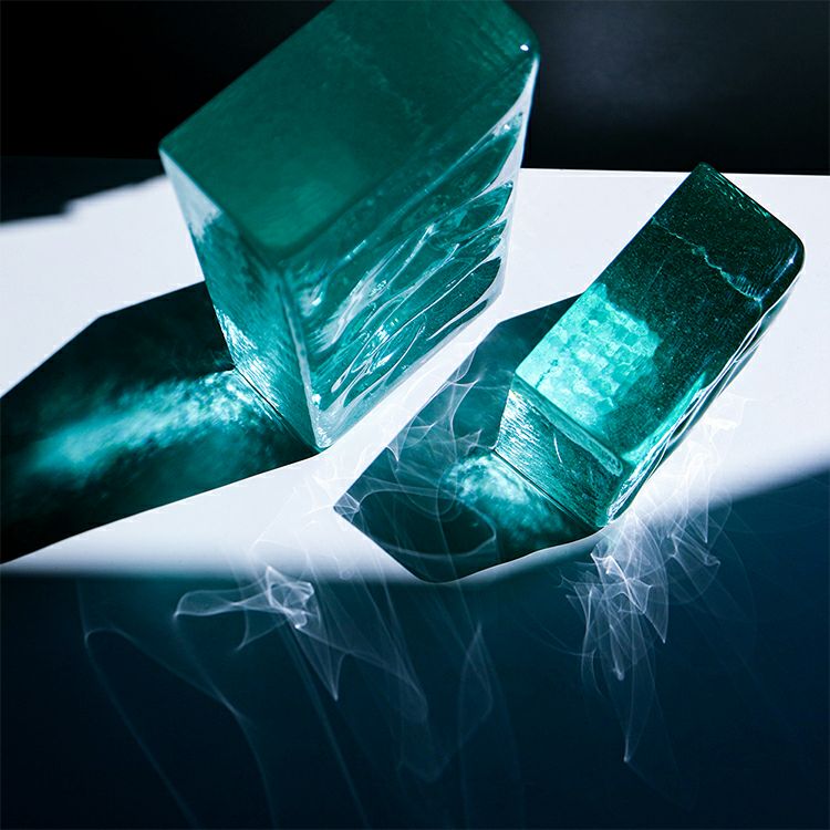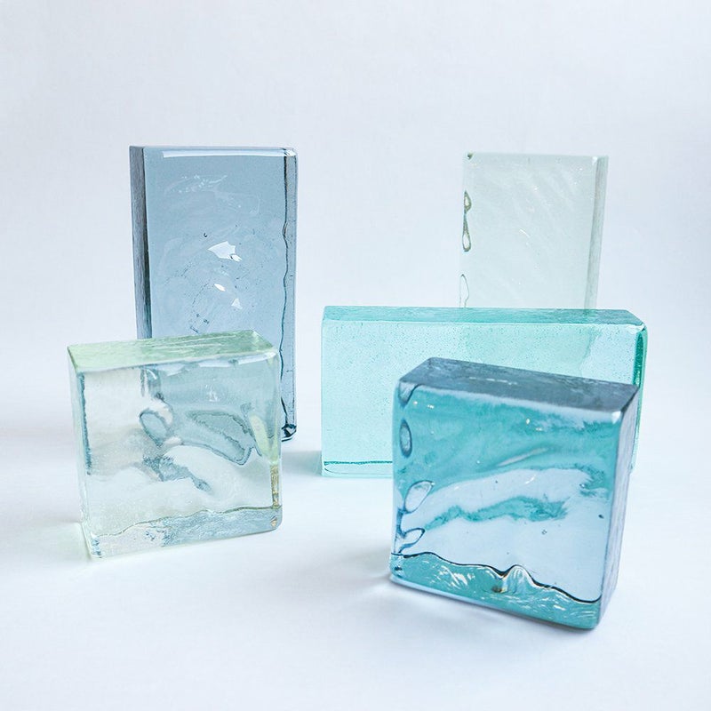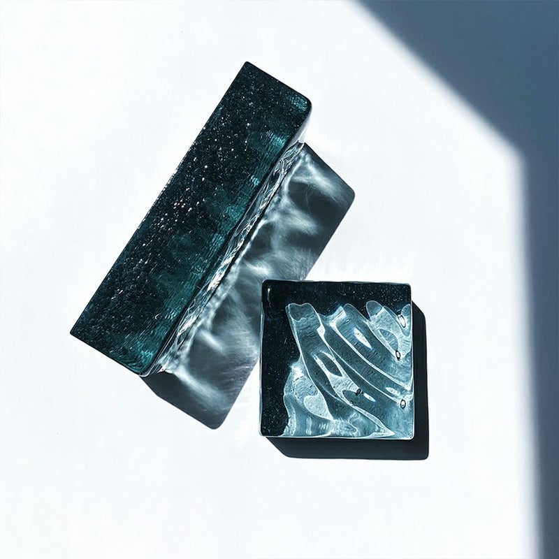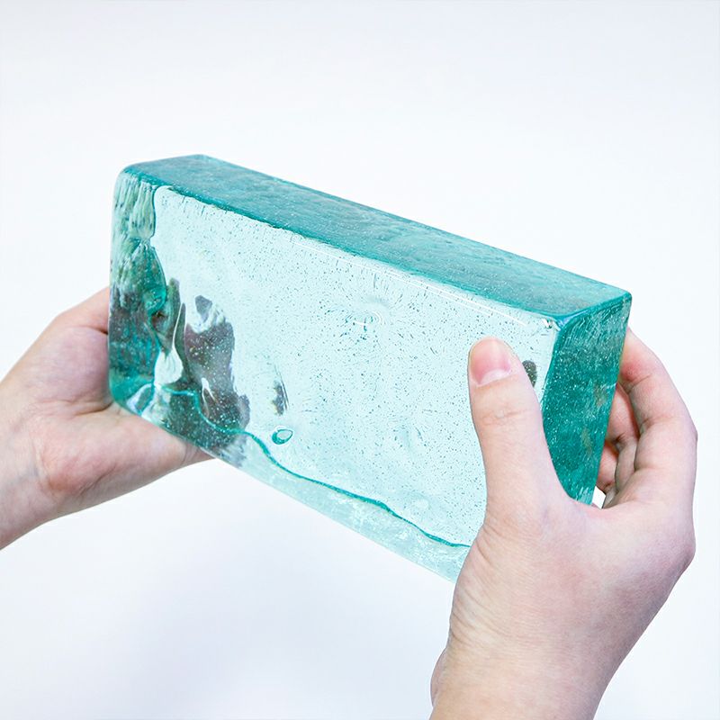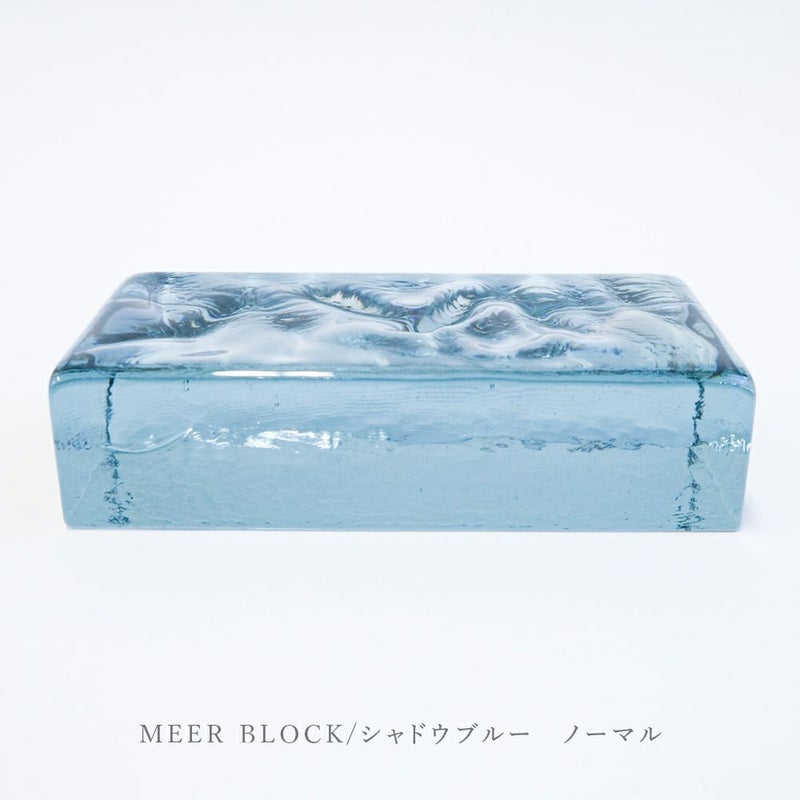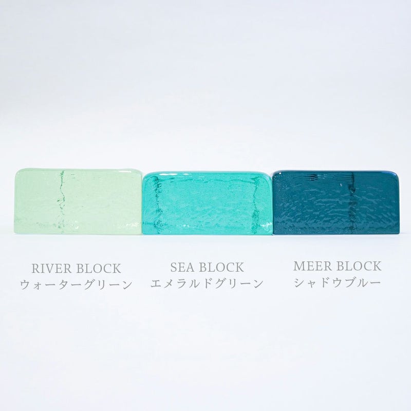 ・SEA BLOCK/エメラルドグリーン (廃ナトリウム灯のリサイクルガラス100%) ナトリウム灯は、街灯やトンネル内の照明などに使われています。 ・MEER BLOCK/シャドウブルー (廃ブラウン管パネルのリサイクルガラス100%) ・RIVER BLOCK/ウォーターグリーン (廃蛍光灯のリサイクルガラス100%) このシリーズは、波打つ水面をイメージして作られています。 手作業で仕上げられた凹凸には穏やかな波間の動き、 そして内包された小さな気泡には時が止まったかのような静けさを感じることができます。 どれも身近な廃棄物のガラスで制作したオブジェです。 いったん役目を終えたガラスが、再び美しく輝くストーリーと佇まいをぜひおそばに。 各2サイズのご用意です。 手作業で制作しているため一つ一つ微妙に表情が異なります。 ノーマル ■サイズ 約 D50mm x W200mm x H100mm ■重さ 約2.5kg ハーフ ■サイズ 約 D50mm x W100mm x H100mm ■重さ 約1.3kg ■ご注意点 ・ギフトラッピングには対応しておりません。 ・ガラス製品につきお取り扱いには十分ご注意ください。