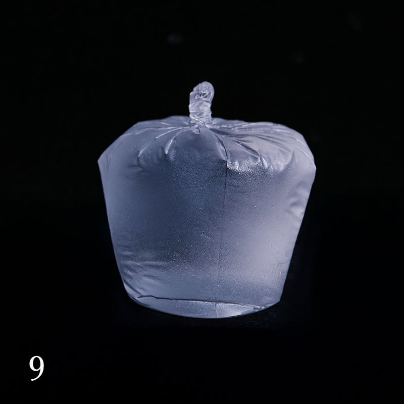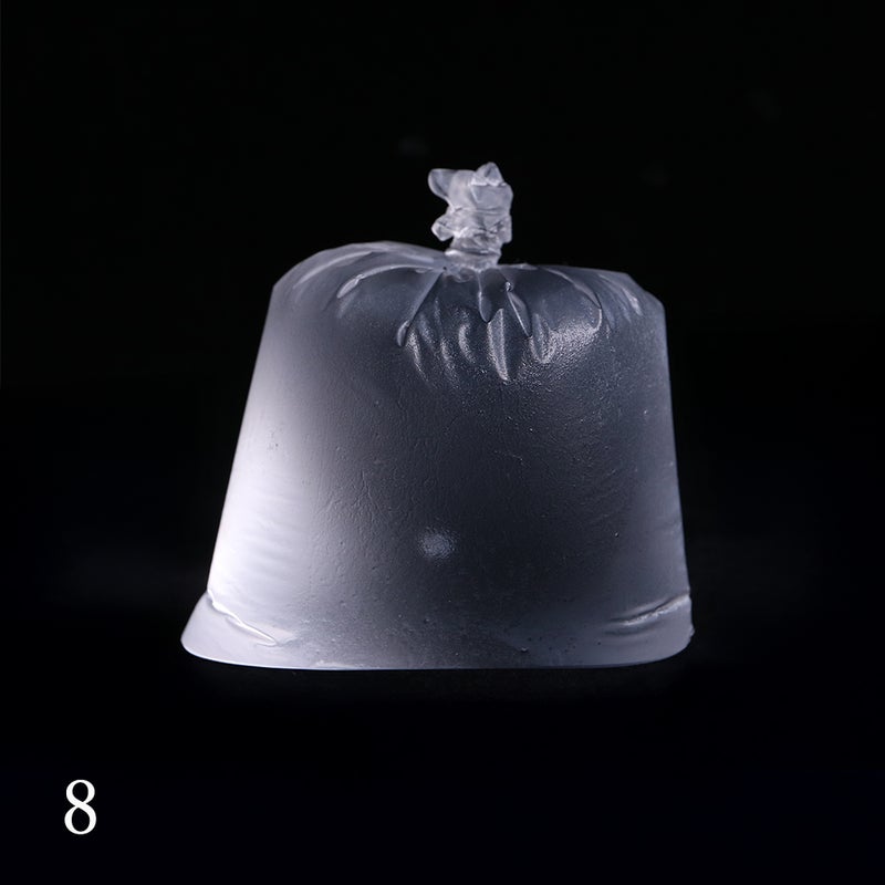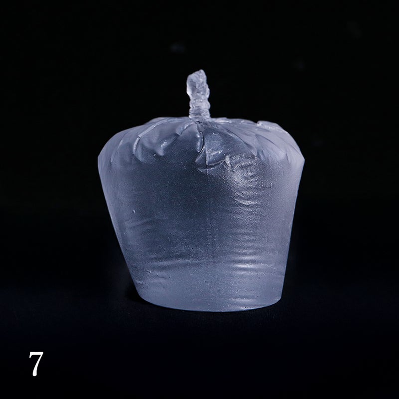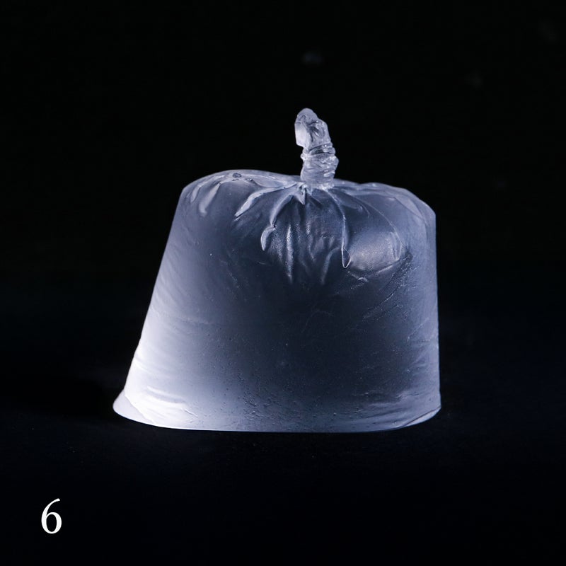 「水が入った袋」を忠実に再現しており、袋の底面の折り目までがしっかりと作品で再現されています。