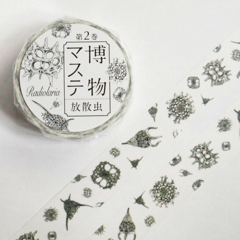 ウサギノネドコのオリジナルマスキングテープ 放散虫柄です。 繊細な放散虫 5種類のイラストをマスキングテープにしました。 原画は関西在住のイラストレーター、池田早秋さんによるものです。 シンプルなモノクロカラーで、使いやすいアイテムです。 ■サイズ W15mm×10M