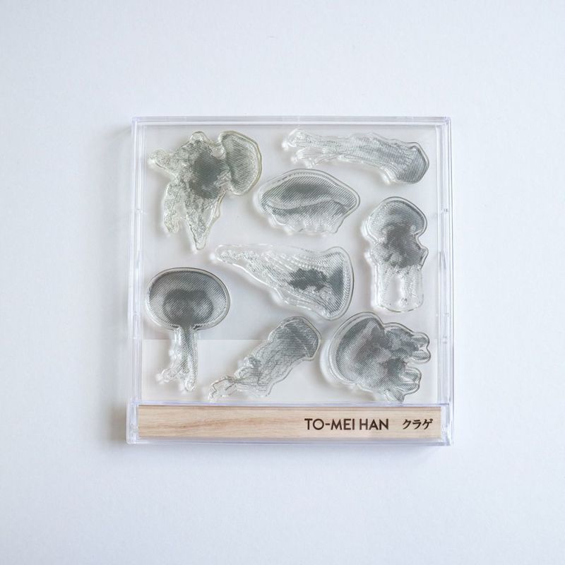 TO-MEIHANは繰り返し貼ってはがせる透明なフォトポリマー製で、アクリル台に貼り付けることでご使用いただけます。