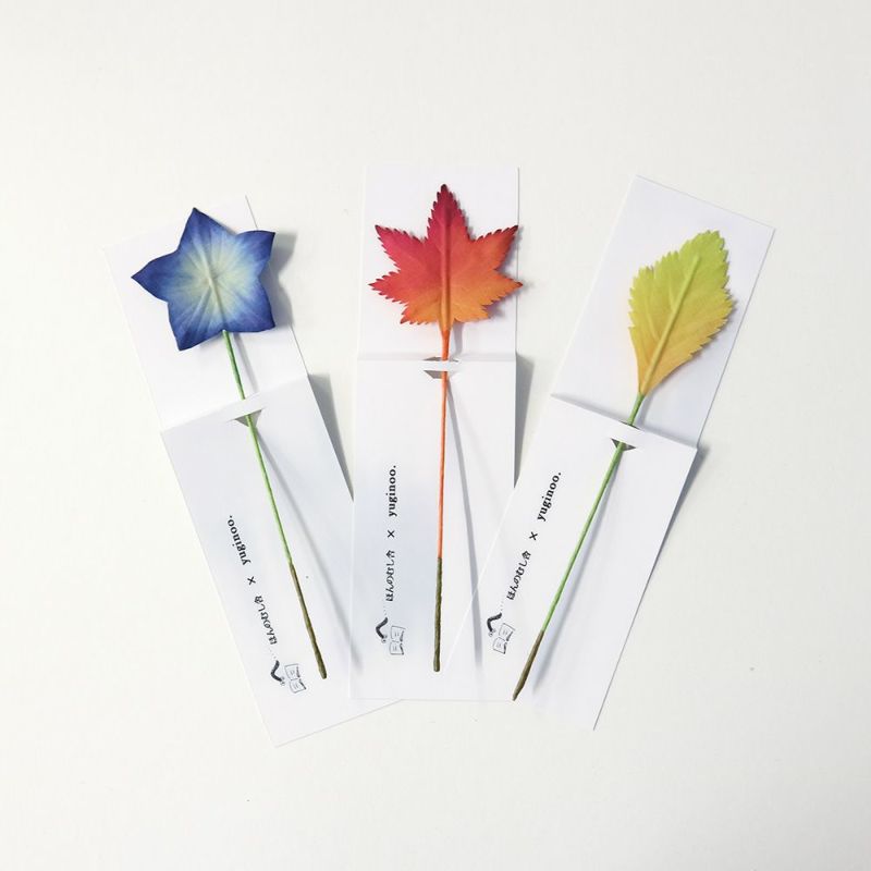 【yuginoo.】植物標本しおり 紙と布で作成された、秋の植物モチーフのしおり。 布を1つずつ染色するところから始まり、コテで押し、植物が持つ曲線や筋が丁寧に表現されています。 本に挟み使用することはもちろん、小瓶に生けて鑑賞することも可能です。 今回は秋をテーマに3つの植物をセレクト。 桔梗や紅葉といった秋の植物たちが、文字の海に彩を添えてくれます。 ホッとするような、 ポッと芽が生えたような、 フフっと花が咲くような、 そんな読書の時間のかたわらに添えてほしい、しおりです。 移動中、休憩中、秋の夜長の読書など、日々の読書をしおりで少し変えてみるのはいかがでしょうか。 ■ブランドプロフィール 「yuginoo.」 原石や自然物を使ったアクセサリーや雑貨を制作しているブランド。 彫金、ビーズ刺繍、染色などの様々な技法を駆使し、作品を制作しています。 ”くらしの中に本を” 植物標本しおりは、「読書」をテーマに本に関する雑貨や家具を製作している「ほんのむし舎」と「yuginoo.」とのコラボ作品です。 ■素材 紙、布 ■サイズ [葉 秋色] 約165mm モチーフサイズ 約65mm [紅葉] 約165mm モチーフサイズ 約60mm [桔梗] 約165mm モチーフサイズ 約50mm ■ご注意点 ・個体によって色合いや大きさが若干異なります。 ・使用しない時は小瓶に生けていただくことも可能ですが、その際はお水にはつけないでください。