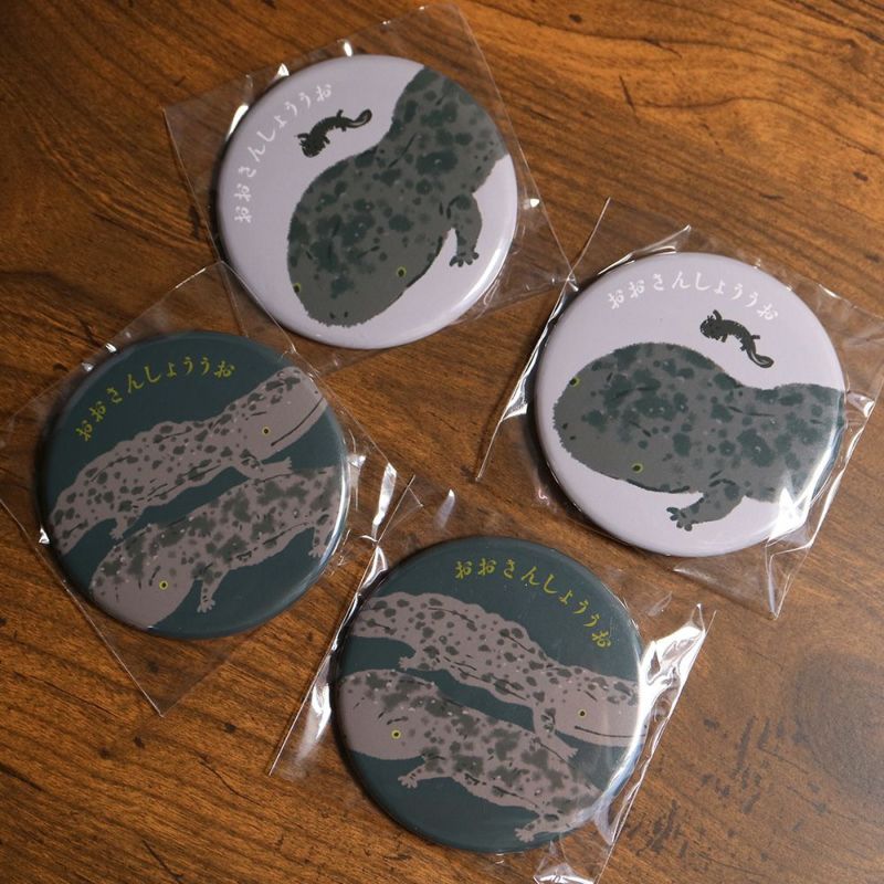 こちらはオオサンショウウオが大きくデザインされた缶バッジです。