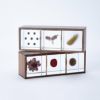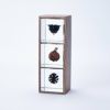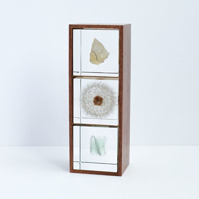 Sola cubeは、複数並んだ時に植物や鉱物の造形美の個性が際立つように設計されています。その魅力を最大限に味わえるのが、 専用木箱にディスプレイされた状態です。 こちらは、お好きな3個のSola cubeを自由にお選びいただけるセットです。 オプションからお選びください。 ■内容物 Sola cube 3個、木箱 [ Sola cube ] ■サイズ D40mm ×W40mm × H40mm ■重さ 約74g [ 木箱 ] ■サイズ D40mm x W47mm x H132mm ■重さ 57g ■素材 ウォルナット材(ウレタン塗装)、真鍮板 ■ご注意点 ・4cmのキューブ専用の木箱です。 ・外箱に入れてお届けいたします。Sola cube単体のパッケージは付属しておりません。 単体のパッケージをご入用の方は、個別に