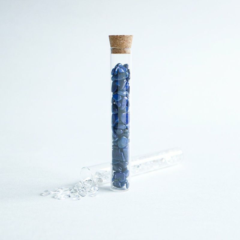さざれ石状の鉱物を、試験管に閉じ込めました。 グラスなどにそのまま飾るだけで空間を彩ってくれるので、今まで鉱物を手にしたことのない方でも、気軽に鉱物のあるインテリアを楽しめます。 もちろん、試験管のコルクを抜いて、実際にさざれ石を取り出すことも可能。 それぞれの鉱物が持つ独特な手触りや、大きな石とはまた違った、ぎゅっと閉じ込められた輝きを手のひらの上で感じることで、ちょっとした気分転換に。 自分用としてはもちろん、大切な人の好きな色や、イメージに合わせて贈ることもできますので、プレゼントにもぴったりです。 包装は、無料のラッピングか、有料のギフトボックスでのラッピングが可能です。 有料のギフトボックスをご希望の場合は、商品と一緒にご購入ください。 ( ギフトボックスの商品ページは