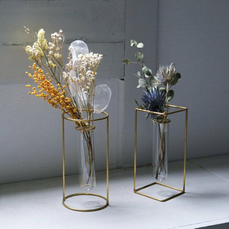 真鍮の華奢なフレームとガラスのフラワーベース。