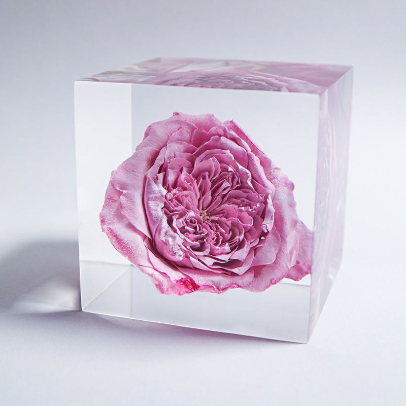 琵琶湖のほとりにある農園で 心を込めて大切に育てられた一輪を、7cm角のキューブに封入しています。