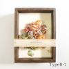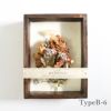 【candleMimosa】ワックスフレーム ワックスフレームは、木型にワックス(蝋)と花を流し込み作成される、火を灯さないタイプのボタニカルキャンドルです。 お部屋に写真を飾るような感覚で、インテリアとしてお楽しみいただけます。 フレームの中には花束のようにドライフラワーが生けられているため、花に想いを込めてプレゼントとしてお渡しするのもおすすめです。 ワックスにはホワイトムスクの香りがついており、お部屋に置くだけで香りが1年ほど持続します。上品でフルーティー、優しくスッキリとした香りです。 また、香料には合成香料を使用しているため、どなたの手に渡っても安心してご利用いただけます。 1点ずつ手作りのため、装いや雰囲気は様々。 一つとして同じものはないドライフラワーの花束を、香りと共にお楽しみください。 ■ブランドプロフィール 「candleMimosa」 アロマキャンドルをはじめとしたお部屋を彩るルームフレグランスを作成するブランド。 ミモザの花言葉「感謝」「思いやり」「友情」のように、自分自身や大切な人への想いを形にする作品づくりをしています。 ■素材 蝋、ドライフラワー、合成香料、木材 ■サイズ [Type A] W140mm × D50mm × H140mm [Type B] W115mm × D45mm × H155mm ■ご注意点 ・個体によって色合いや大きさが異なります。 ・蝋の性質上、高温になると変形や場合によっては溶ける可能性がございます。 日差しの強い場所や車内などに置かないようにお願いいたします。 ・環境により香りの持続時間が異なる場合があります。