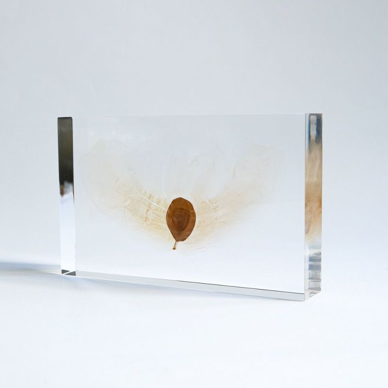 アルソミトラ(Alsomitra)をアクリル樹脂に封入した標本。
