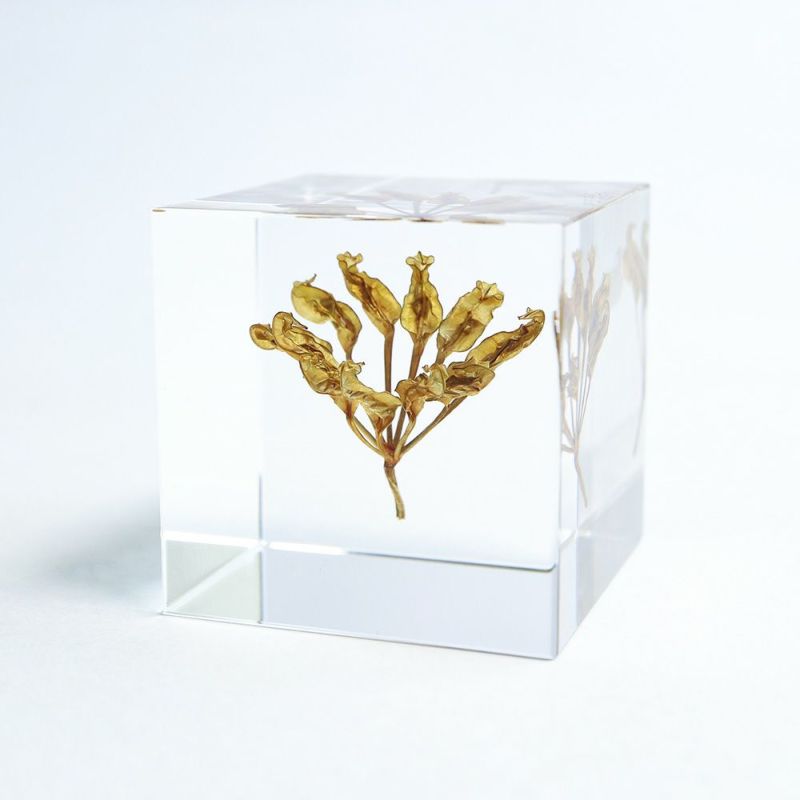 ・Sola cube は1つ1つ職人が手作りしています。封入されている植物の大きさ、色、形はすべて異なります。