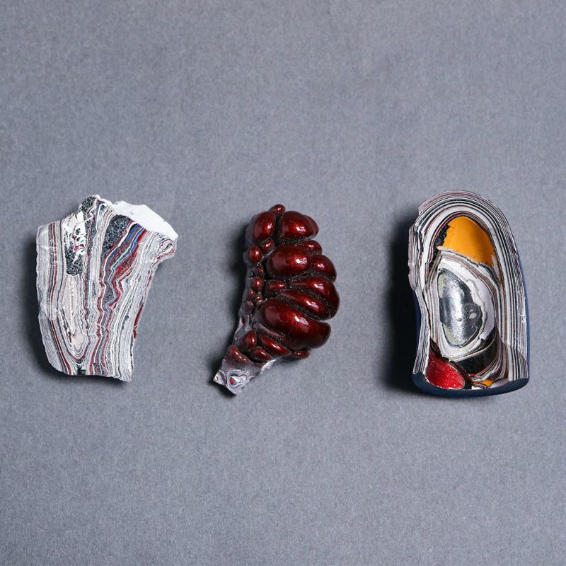 エナメル塗料を剥がして磨いてみると美しい模様が現れ、その模様がまるでメノウのようであることから「デトロイトアゲート」という名がつけられました。