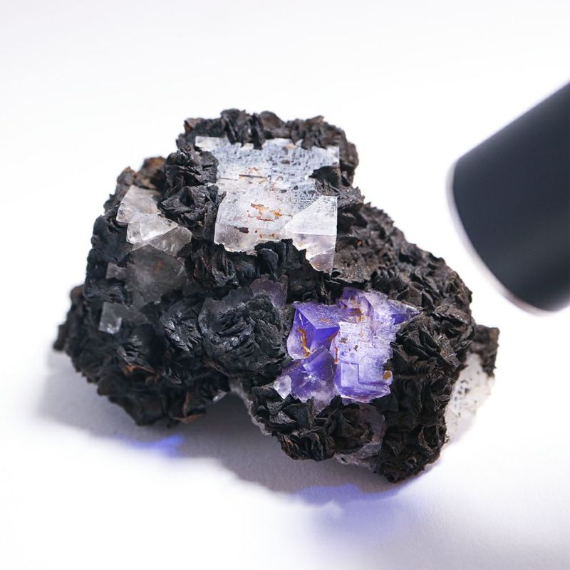 こちらはUVライトに当てると青く蛍光します。(写真は365nm使用)