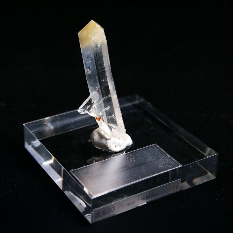 水晶の先端がマンゴーのように鮮やかな黄色に染まった水晶です。