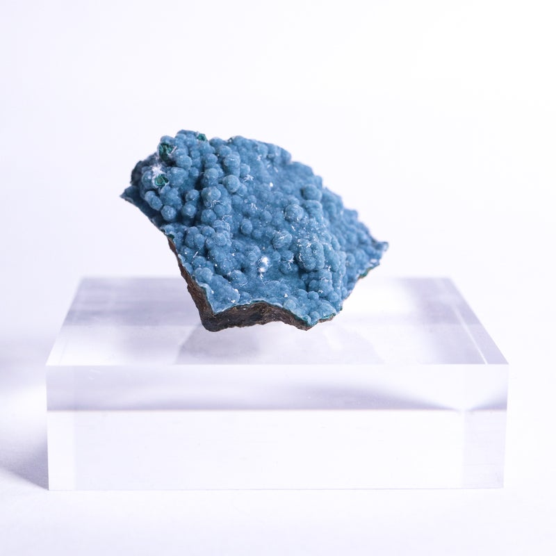 ネイビーに近いような色合いで、大小様々な結晶がポコポコと連なっています。