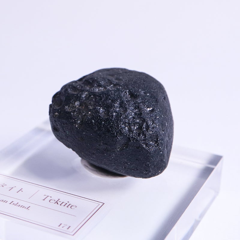 隕石が地上に落下した際に、熱や衝撃で急冷して固まったガラス質の石と言われています。