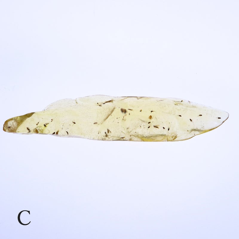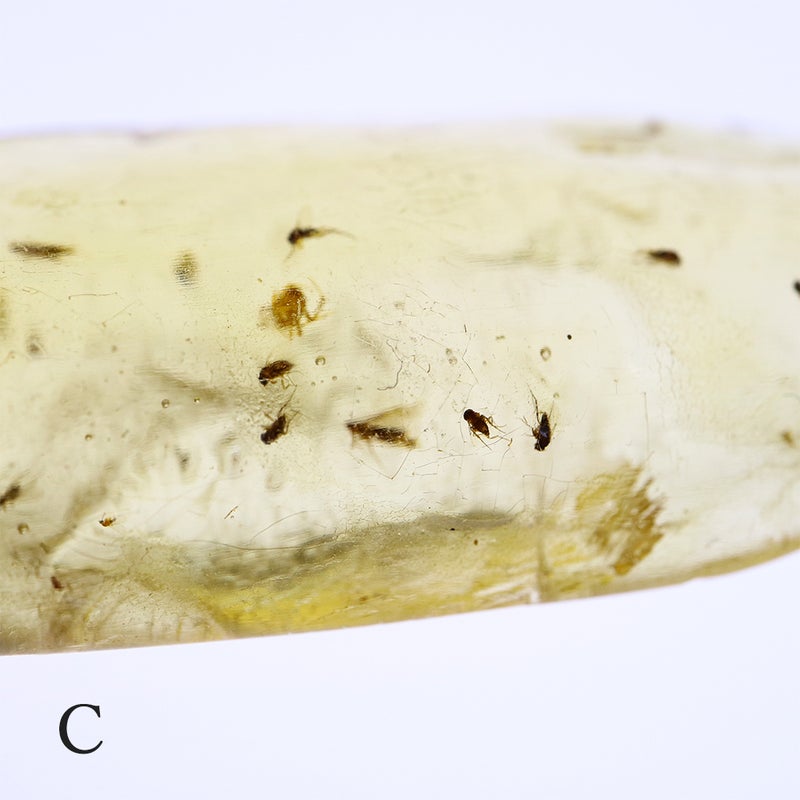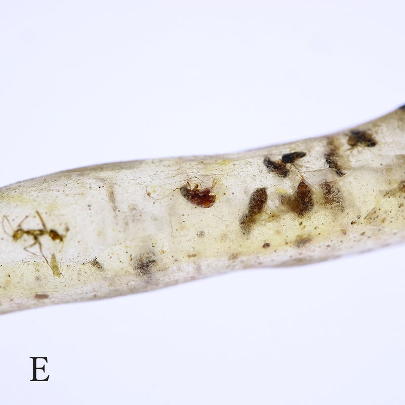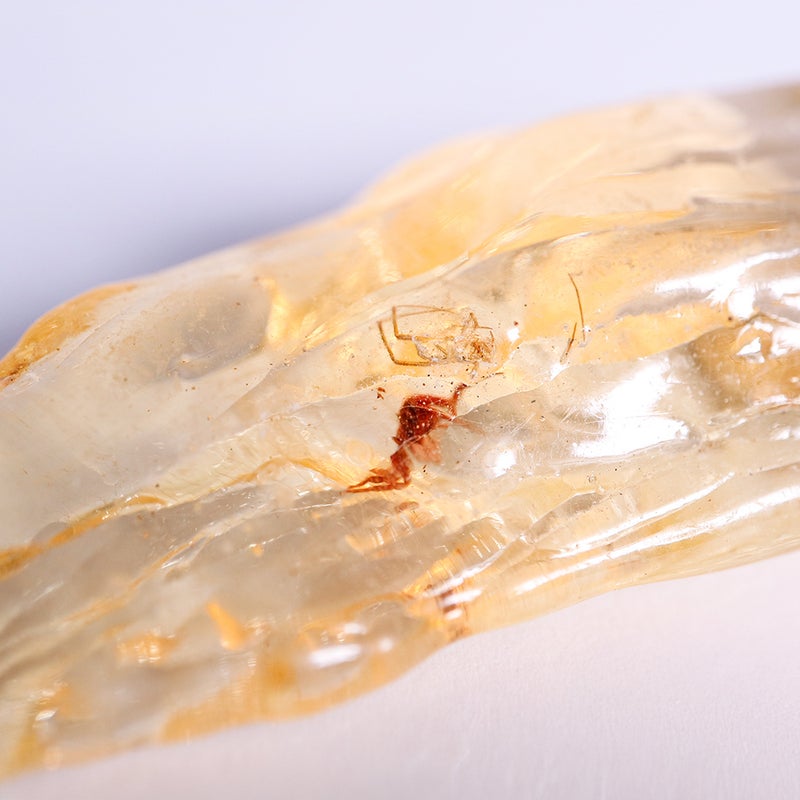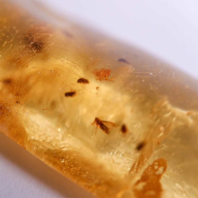 天然の樹液が長い年月を経て化石になったもので、その過程で虫が内包されることがあります。