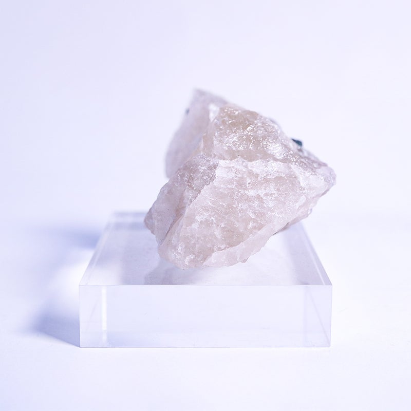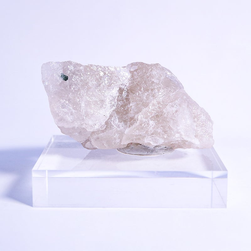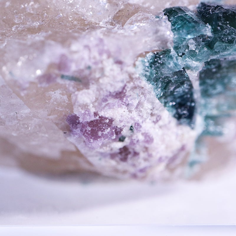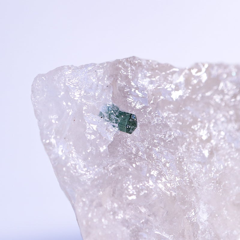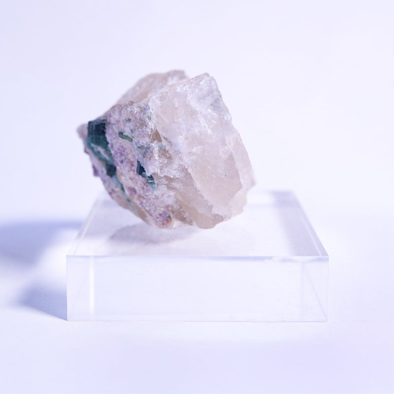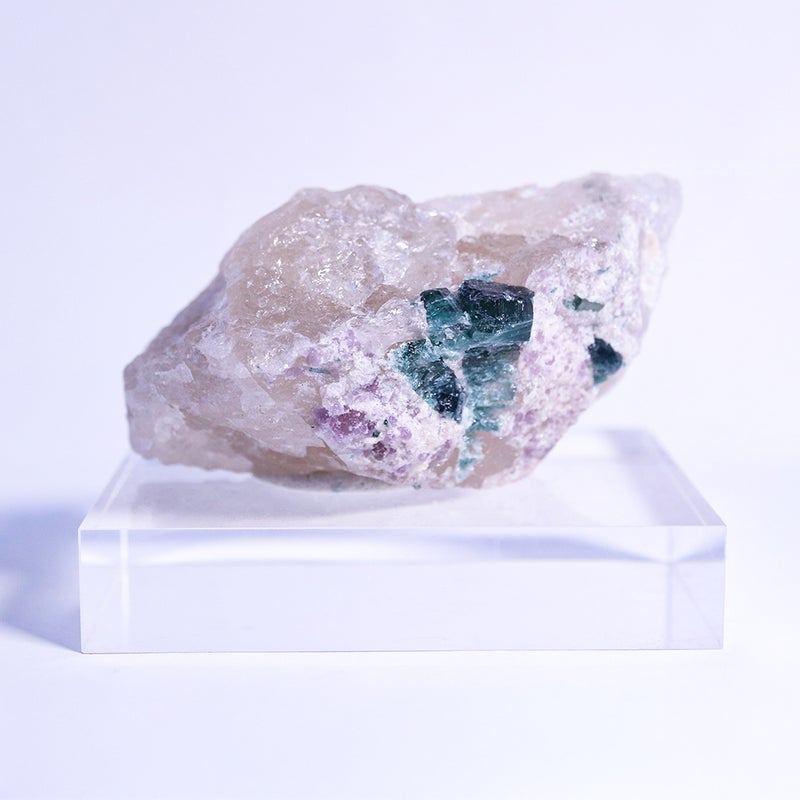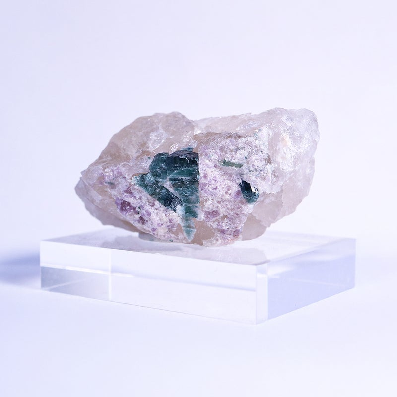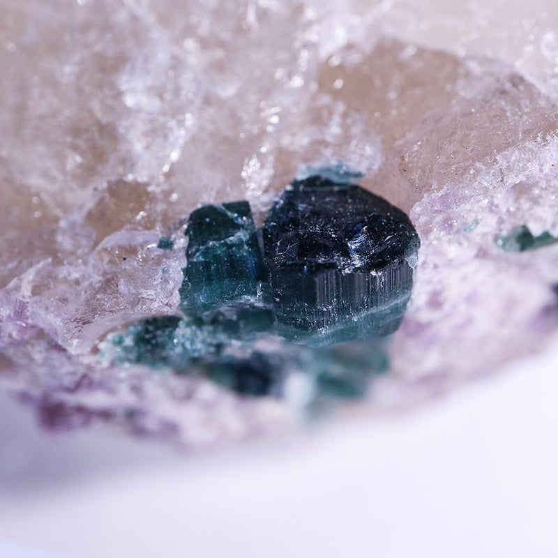 白い水晶に、深い青緑のトルマリンが美しく映えます。