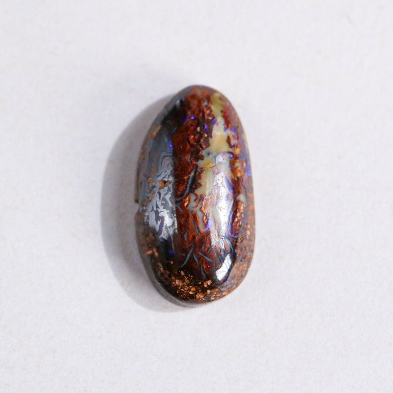 2cmほどの大きさに研磨されたオパールから、溢れ出るような虹色の遊色がのぞきます。