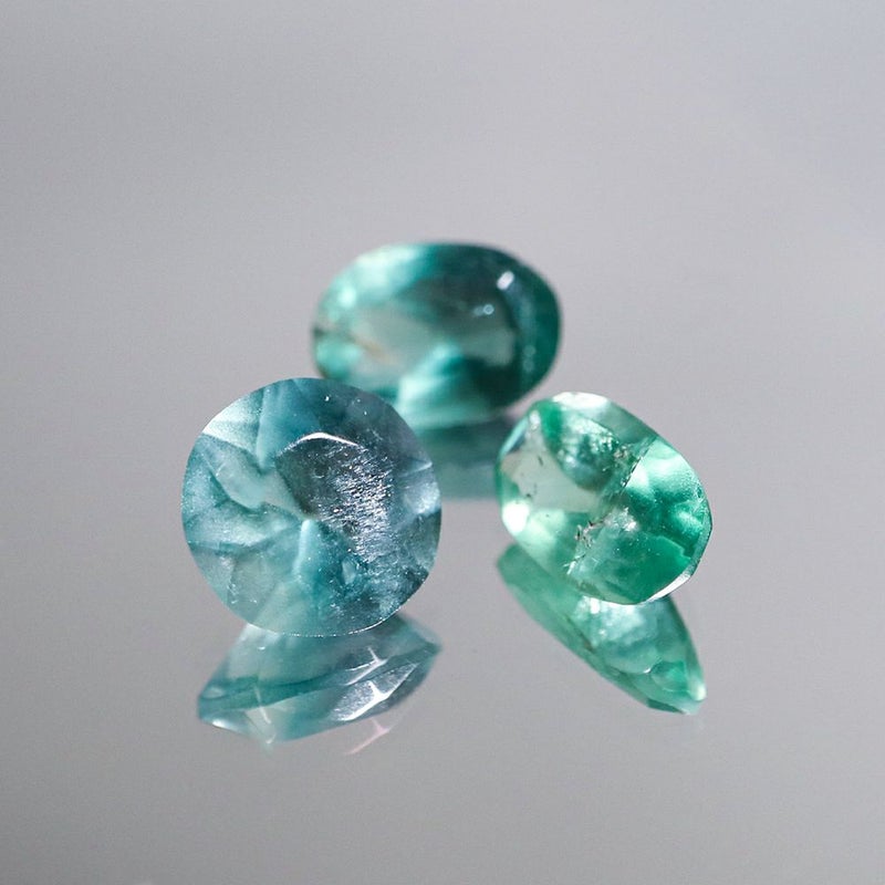 ジュエリーにはならなかったものの、自然が生み出したインクルージョンや、職人が研磨の技を磨いた跡が刻まれた、唯一無二の表情を持つルースたち。