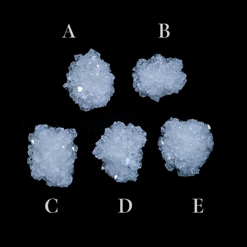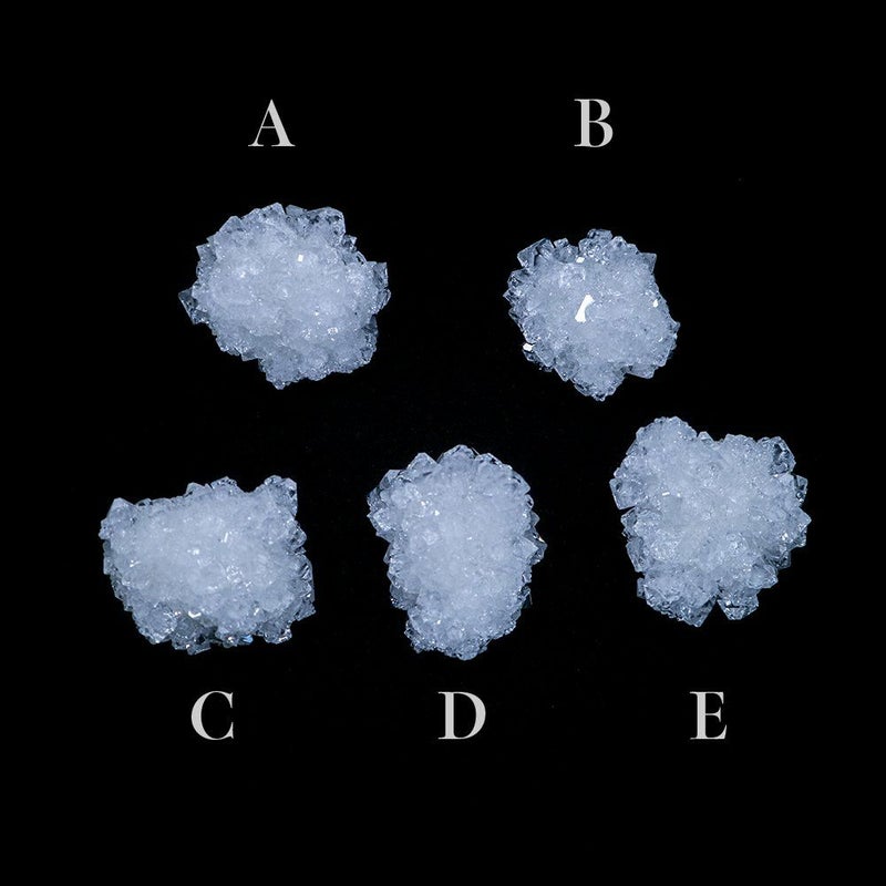 カリウムミョウバンの人工結晶です。 人工結晶は、人間による工夫と自然の力の共同作業によって生まれる、自然と人工の狭間にあるもっとも象徴的な物の一つと言えるかもしれません。 条件を整え、きっかけを与えるところまでは人間の手で行いますが、実際に結晶ができていく過程を自然の力に委ねることで、はじめてその造形美が完成します。 人間の手と自然の摂理が交わって出来た、透き通る群晶をご堪能ください。 ■名前 カリウムミョウバン(Potassium alum) ■製造国 Japan ■サイズ 約 D30~40mm x W40~50mm ■ご注意点 ・大きさに個体差があります。採寸は平均値になります。 ・水に溶けやすいため、濡れた手などで触らず、湿気の多いところを避けてご鑑賞ください。 ・指紋がつきやすいため、結晶の角部分を持つようにしてください。 (稀に鋭い部分がありますので、十分にご注意ください)