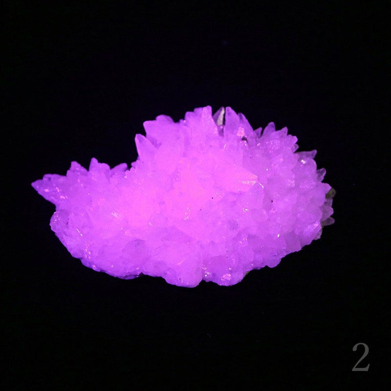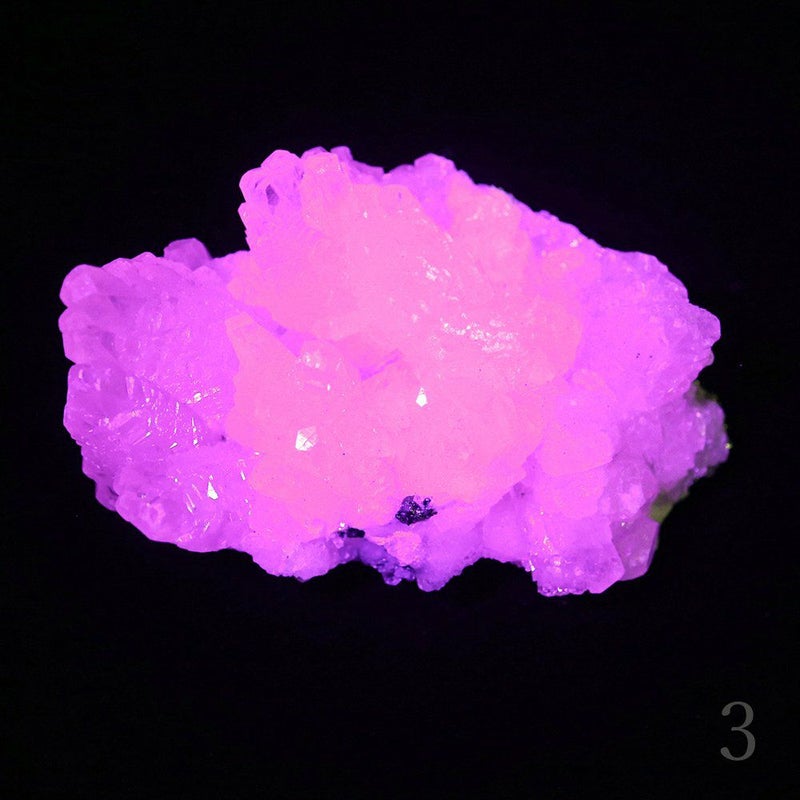 白く、雪のような見た目のカルサイト。 波長395nmのUVライトを当てると、その落ち着いた姿からは想像もできないような幻想的なピンク色に蛍光します。 衝撃を与えると六方格子という平行六面体に割れることから、和名では方解石と呼ばれています。 ひとつひとつ棘のように見えているのが、その六面体に割れた結晶。ぜひお手元でご確認ください。 底面に黄鉄鉱が含まれていますので、キラキラとした黄鉄鉱の輝きもお楽しみいただけます。 2 サイズ 約D35mm × W55mm × H20mm 重さ 約34g 産地 Fujian, China 3 ■サイズ 約D35mm × W50mm × H25mm ■重さ 約38g ■産地 Fujian, China 6 ■サイズ 約D35mm × W50mm × H35mm ■重さ 約51g ■産地 Fujian, China ■ご注意点 ・個体差があるため、サイズは目安になります。 ・ギフトラッピングには対応しておりません。 ・UVライトは付属しません。