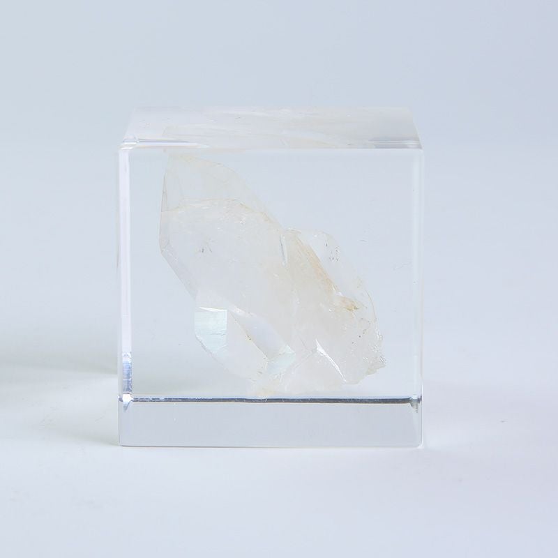 宙言葉:時は結晶する 1mm成長するのに100年かかるといわれている水晶。 成分に含まれるケイ素は地球に多く存在し、古くから様々な用途で利用されています。 また、結晶が成長する際の温度や圧力によって形が変わることも知られています。 ■素材 アクリル樹脂、鉱物 ■サイズ D50mm × W50mm × H50mm ■重さ 約165グラム ■ご注意点 ・Sola cube は1つ1つ職人が手作りしています。封入されている植物の大きさ、色、形はすべて異なります。 ・製造の工程上、内部に微細な気泡やチリ状のものが発生することがありますが、商品の不良ではありません。 ・温度の高い場所に長時間置くと、変形したり細かいクラック(ひび割れ)が入ることがあります。炎天下などの高温を避けてご使用ください。 ・シンナーやアルコールなどの溶液や薬品に触れると細かいクラック(ひび割れ)が入ることがあります。お手入れの際は柔らかい布で拭いてください。