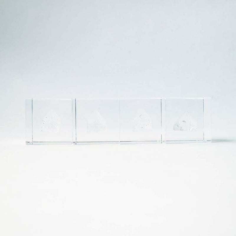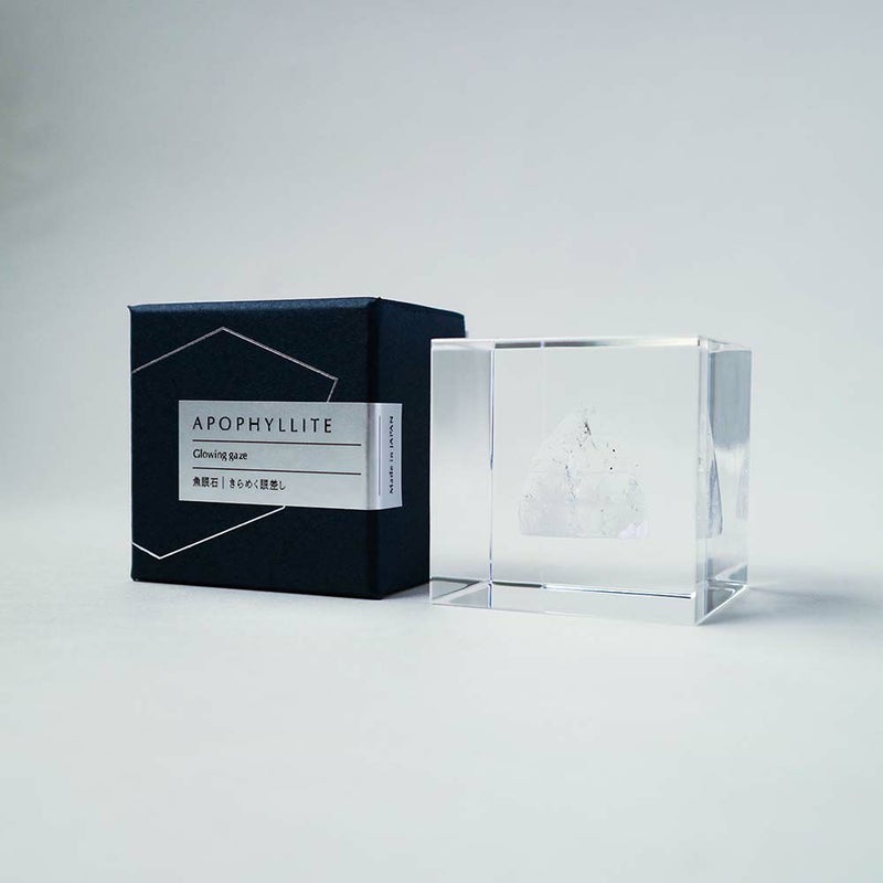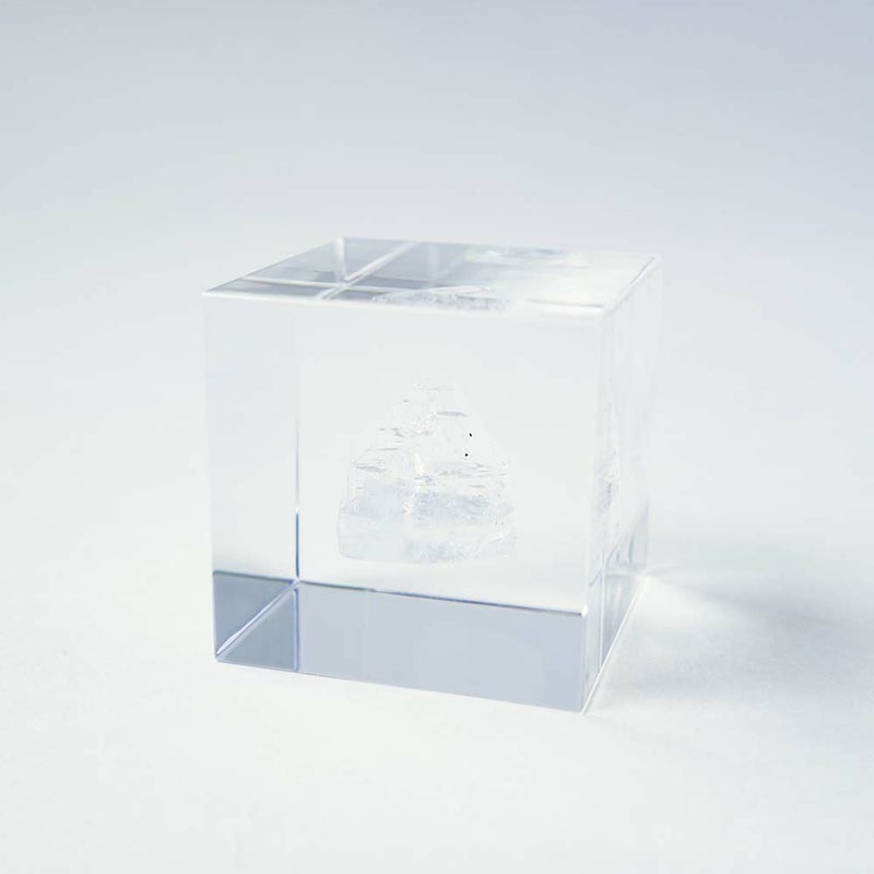 宙言葉:きらめく眼差し 一見すると水晶に似ていますが、真上から見た時に四角形や八角形に見えるのが特徴です。 内部のひび割れによる光の反射が美しく、この光の見え方が魚の目の輝きに似ていることから名前がつけられました。 ■素材 アクリル樹脂、鉱物 ■サイズ D40mm × W40mm × H40mm ■重さ 約80グラム ■ご注意点 ・Sola cube は1つ1つ職人が手作りしています。封入されている植物の大きさ、色、形はすべて異なります。 ・製造の工程上、内部に微細な気泡やチリ状のものが発生することがありますが、商品の不良ではありません。 ・温度の高い場所に長時間置くと、変形したり細かいクラック(ひび割れ)が入ることがあります。炎天下などの高温を避けてご使用ください。 ・シンナーやアルコールなどの溶液や薬品に触れると細かいクラック(ひび割れ)が入ることがあります。お手入れの際は柔らかい布で拭いてください。