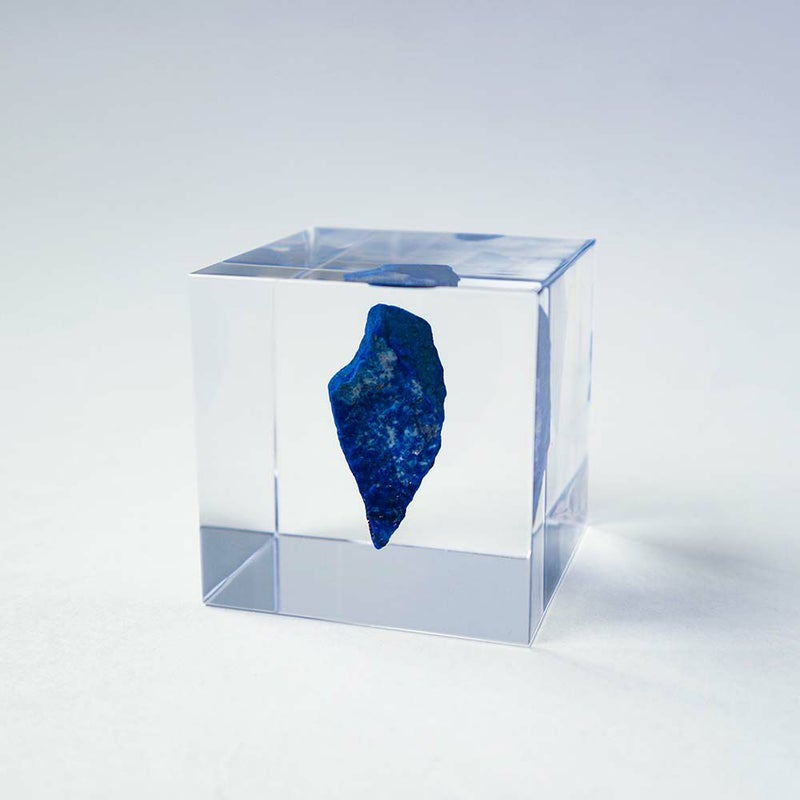 宙言葉:深淵な知性 12月の誕生石でもあるラピスラズリ。 その利用においてとても古い歴史を持ち、古代エジプトにおける有力者の装飾品として出土した例もあります。 また、この鉱物を砕き精製して作られる顔料「ウルトラマリン」は、画家フェルメールが愛用したことで有名です。 ■素材 アクリル樹脂、鉱物 ■サイズ D40mm × W40mm × H40mm ■重さ 約80グラム ■ご注意点 ・Sola cube は1つ1つ職人が手作りしています。封入されている植物の大きさ、色、形はすべて異なります。 ・製造の工程上、内部に微細な気泡やチリ状のものが発生することがありますが、商品の不良ではありません。 ・温度の高い場所に長時間置くと、変形したり細かいクラック(ひび割れ)が入ることがあります。炎天下などの高温を避けてご使用ください。 ・シンナーやアルコールなどの溶液や薬品に触れると細かいクラック(ひび割れ)が入ることがあります。お手入れの際は柔らかい布で拭いてください。