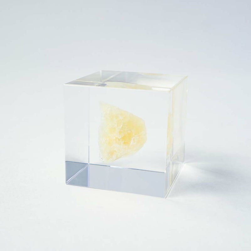 宙言葉:瑞々しい笑顔 果物のオレンジのような色を持つこの鉱物は、「方解石」と呼ばれる鉱物のグループに属します。 微量に含まれる成分によって色を変え、ピンク色やオレンジ色のものなどがあります。 ■素材 アクリル樹脂、鉱物 ■サイズ D40mm × W40mm × H40mm ■重さ 約80グラム ■ご注意点 ・Sola cube は1つ1つ職人が手作りしています。封入されている植物の大きさ、色、形はすべて異なります。 ・製造の工程上、内部に微細な気泡やチリ状のものが発生することがありますが、商品の不良ではありません。 ・温度の高い場所に長時間置くと、変形したり細かいクラック(ひび割れ)が入ることがあります。炎天下などの高温を避けてご使用ください。 ・シンナーやアルコールなどの溶液や薬品に触れると細かいクラック(ひび割れ)が入ることがあります。お手入れの際は柔らかい布で拭いてください。