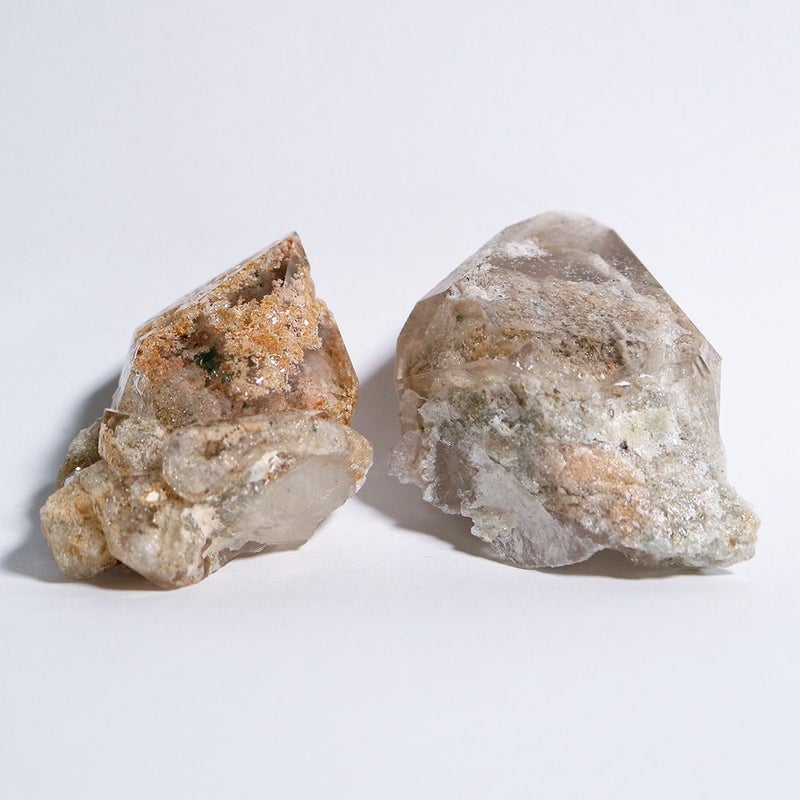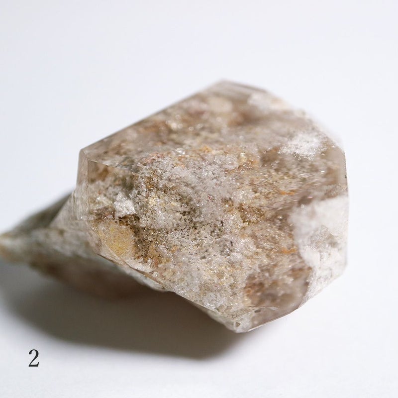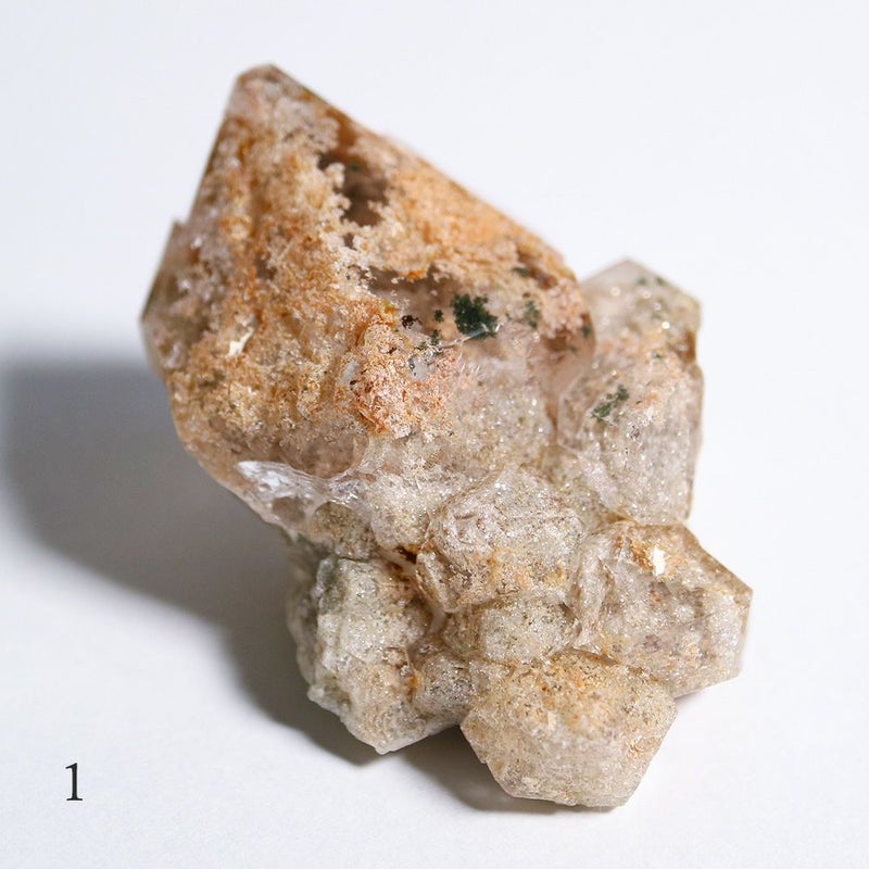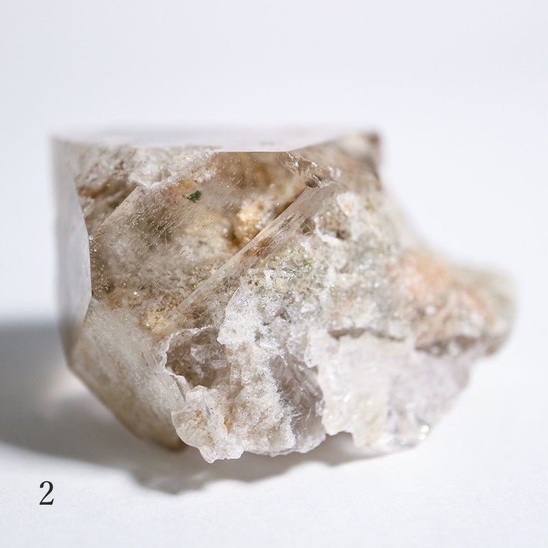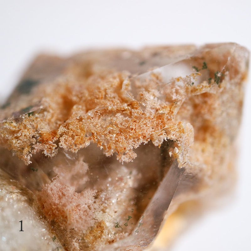 内包物には緑泥石やルチルなど様々な鉱物があり、草花や砂場、雪が降っているかのような印象をあたえます。