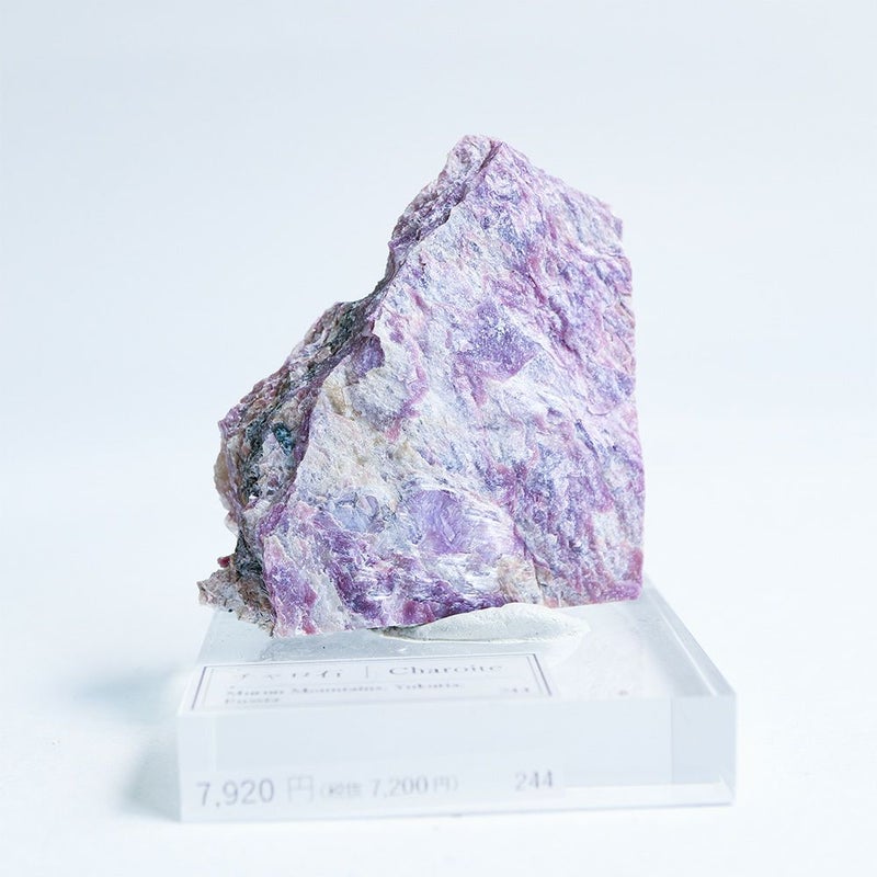 この薄紫色をした鉱物の由来には、ロシアのチャロ川で調査・発見された説と、ロシア語の「Charo(魅惑)」から取られた説の2つがあります。