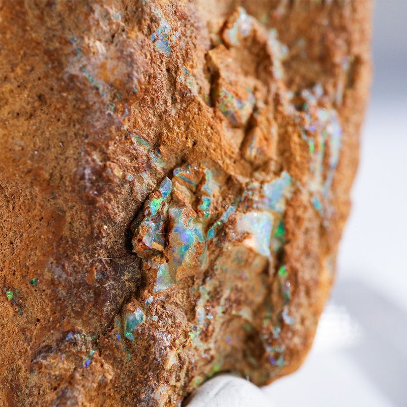 この七色の輝きは「遊色効果」と呼ばれるもので、表面に近い結晶が層のようになり、光が干渉し合い反射する中で生まれる光です。