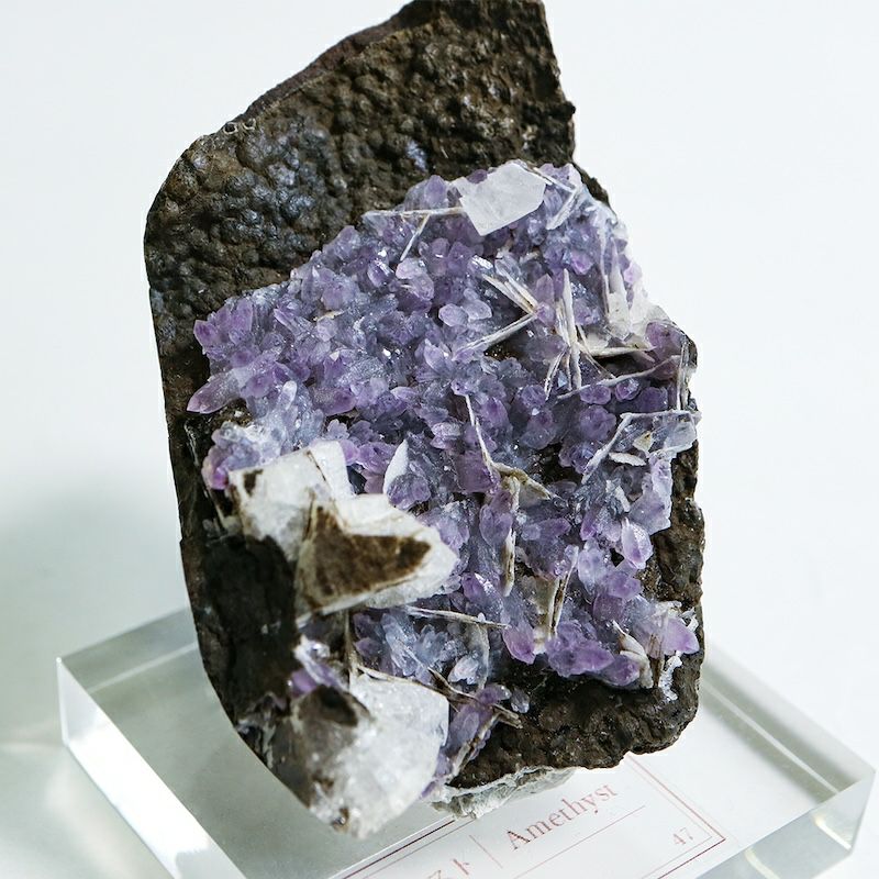 美しい紫色は、結晶にわずかに含まれる鉄イオンによって現れます。