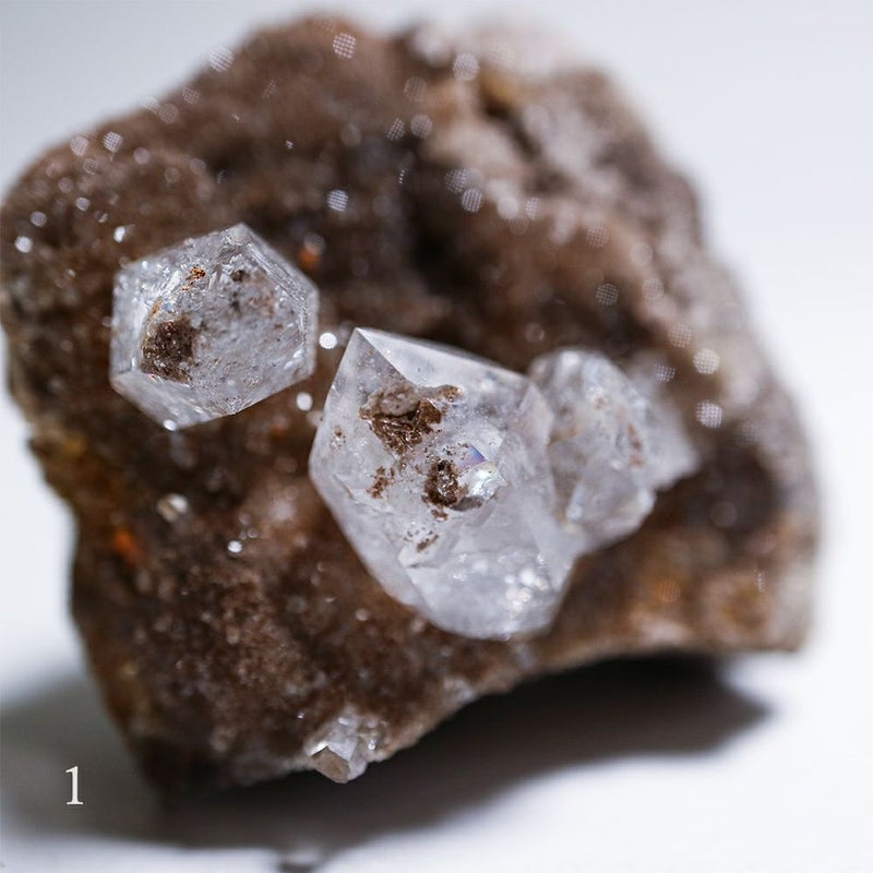 ハーキマーダイヤモンドはダイヤモンドに匹敵するほどの高い透明度をもつ水晶です。
