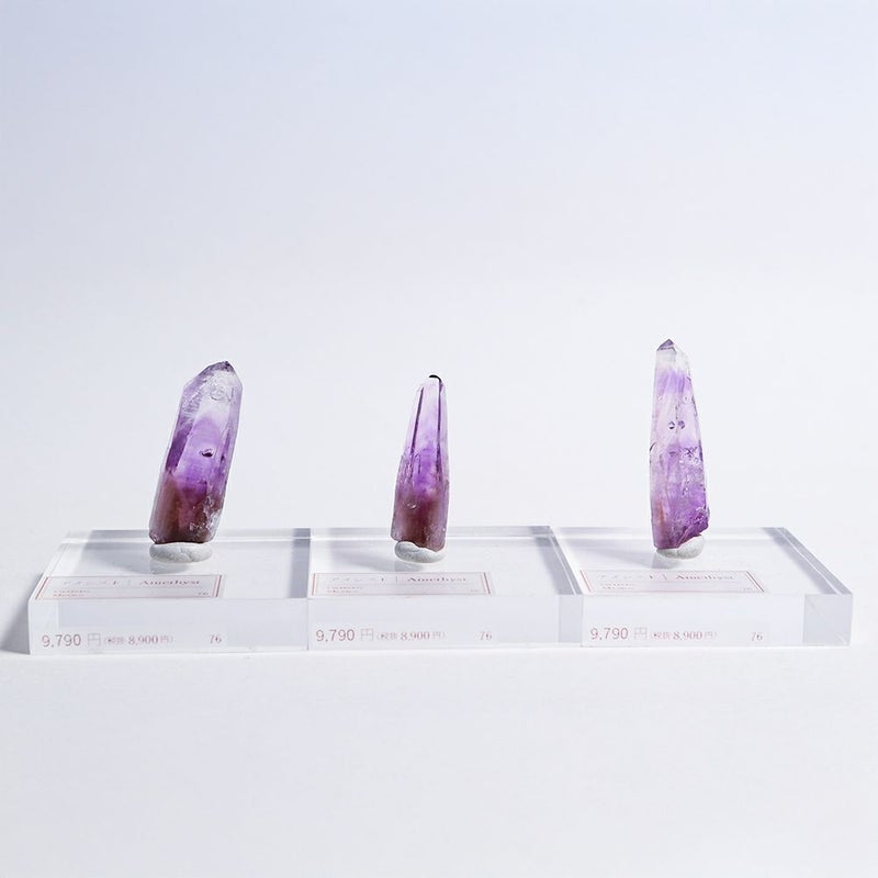 こちらの3種はよく見ると、中に紫色の山形が形成されているのがわかります。 透明度も高く、見応えは抜群です。
