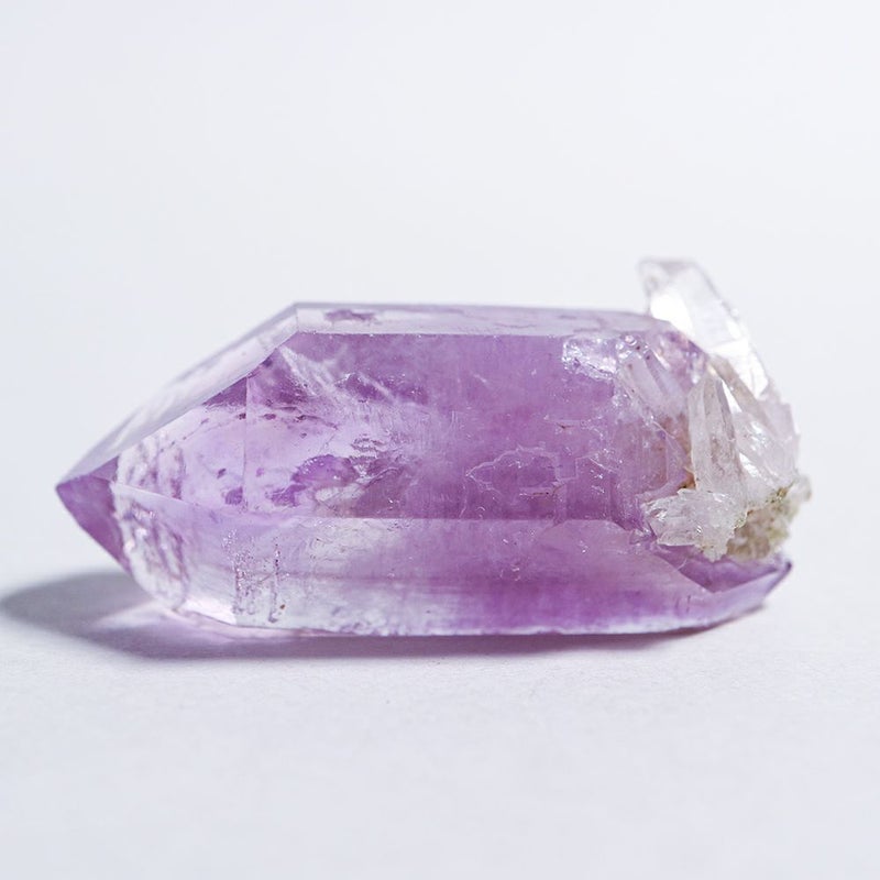 美しい紫色は、結晶にわずかに含まれる鉄イオンによって現れます。