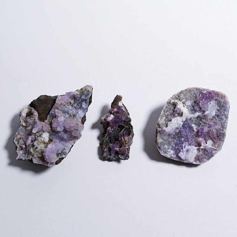 形や大きさ、色合いも異なる3種のアメシストをご用意いたしました。