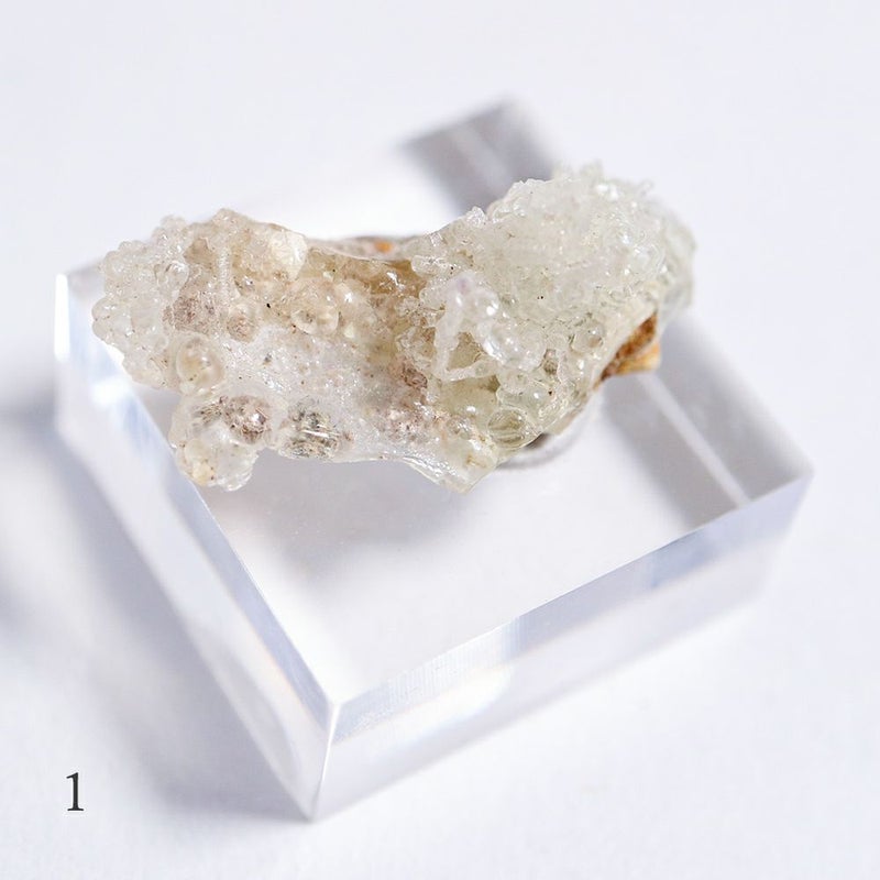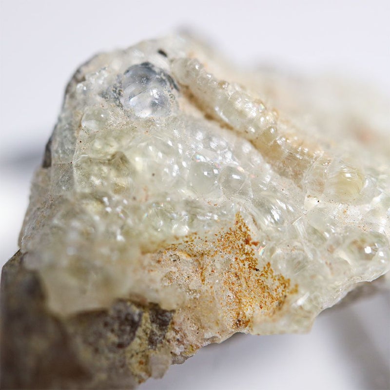 ハイアライトオパールは母岩に水滴が時を止めたように結晶した鉱物です。